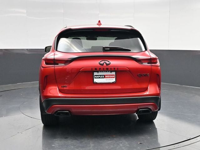 Naples Nissan Advantage Package, which includes... -Tire Replacement for Life -Window Tint with Lifetime Warranty -Door Edge Protection with Lifetime Warranty -Permaplate Paint Protection -Lifetime Service Loaners -Free Courtesy Car Washes for Life. Dynamic Sunstone Red 2023 INFINITI QX50 SPORT AWD CVT I4 Odometer is 18985 miles below market average! 22/28 City/Highway MPG