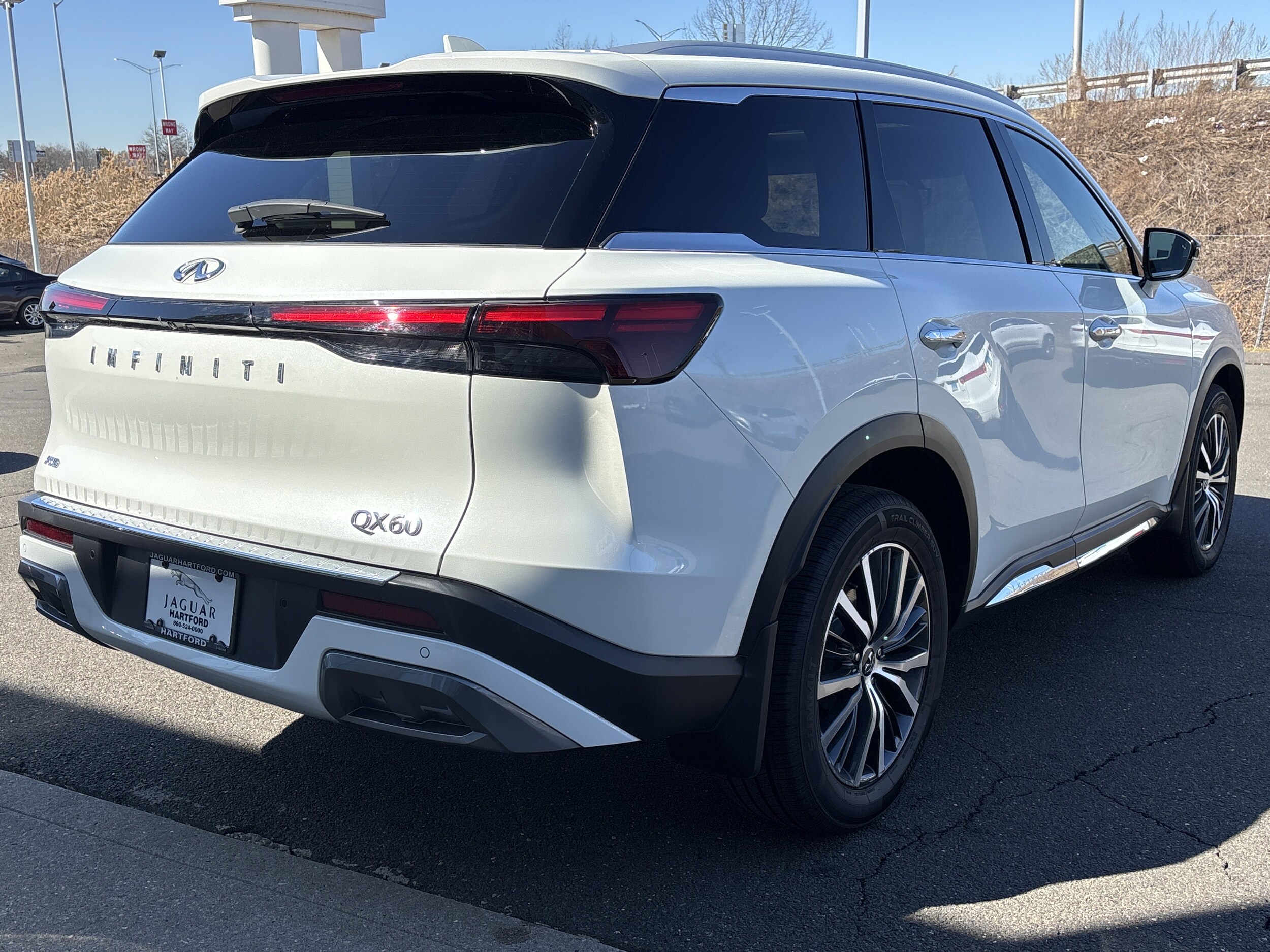2023 Infiniti QX60 Sensory AWD -- 44,937 Miles -- Majestic White. Available now at Jaguar Hartford, this beautifully designed 2023 Infiniti QX60 Sensory AWD blends luxury, advanced technology, and confident all-weather performance. Finished in Majestic White over Saddle Brown leather, this three-row luxury SUV offers sophisticated styling with 20-inch aluminum-alloy wheels, LED lighting, and a bold, modern presence. With 44,937 miles, this QX60 has been fully inspected and is ready for its next owner. Spacious, refined, and loaded with top-tier features, the Sensory trim represents the highest level of comfort and innovation in the QX60 lineup. At Jaguar Hartford, we pride ourselves on delivering a luxury-level purchase experience to match the vehicle you're driving home. Schedule your test drive today. Premium three-row SUVs this well equipped and this clean do not last.