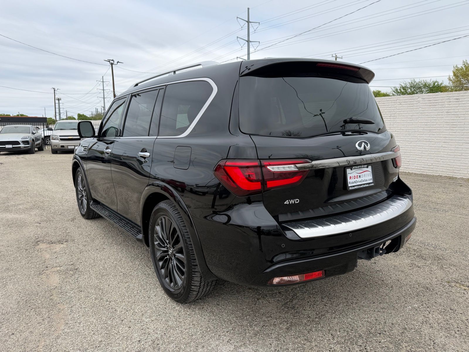 Black Obsidian 2023 INFINITI QX80 Premium Select 5.6L V8 7-Speed Automatic. Recent Arrival! CARFAX One-Owner. 83K MSRP. This vehicle comes with the following features and options. At Ride N Drive in Dallas, hundreds of pre-owned vehicles are like new and most are still under factory warranty. Ask about our nationwide shipping, certified pre-owned program, and leasing options. Advertised prices do not include sales tax, documentation fees, title processing charges, and dealer pre-installed products. While we try to ensure that all prices posted here are accurate at all times, we cannot be responsible for typographical and other errors that may appear on the site. We make every effort to provide you with the most accurate, up-to-the-minute information; however, it is your responsibility to verify with the dealer that all details listed are accurate. The dealership is not responsible for typographical, pricing, product information, advertising, or shipping errors. Vehicles include a ceramic coating and the Ride N Drive Friends and Family Bundle ($1995). Exclusions apply. All rates and offers are subject to bank approval, which depends on the applicant's credit and the vehicle.