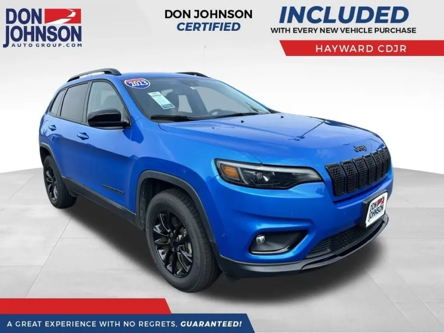 Clean CARFAX. CARFAX One-Owner. Priced below KBB Fair Purchase Price! 21/29 City/Highway MPG Hydro Blue Pearlcoat 2023 Jeep Cherokee Altitude 4D Sport Utility 4WD 2.4L I4 9-Speed 948TE Automatic. Since 1915, the Johnson family has been a beacon of automotive excellence. It all began when John Peter (JP) Johnson opened a humble gas station in Star Prairie, Wisconsin selling Studebakers and Maxwell automobiles. Our story isn't just about selling cars, though. It's about resilience, hard work, and an unwavering commitment to improving the lives of those we serve. Over the past 100+ years, we've navigated through economic depressions, world wars, and global pandemics, always backed by our amazing team and you, our loyal guests. We invite you to join the Don Johnson family and be part of our continuing journey. You're not just a customer to us; you're a honored guest and part of the legacy that makes Don Johnson Auto Group what it is today. We look forward to serving you. Buy with confidence. Don Johnson Motors is a 5th generation family business that has been proudly serving the area for over 100 years. When speaking with our NONCOMMISSIONED SALES TEAM about this vehicle!