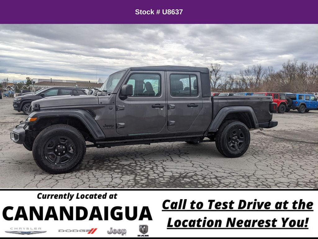 Discover the Rugged Capability and Versatility of the 2023 Jeep Gladiator Sport 4x4. Introducing the 2023 Jeep Gladiator Sport 4x4, a true off-road champion that blends uncompromising capability with modern convenience. This exceptional vehicle is ready to take on any adventure, whether you're conquering the trails or navigating the city streets. Powered by a robust 3.6L V6 24V VVT engine paired with an 8-Speed Automatic transmission, the Gladiator Sport 4x4 delivers the performance and control you demand. With its impressive 4WD system, you'll conquer any terrain with confidence, while the Selec-Speed Control feature ensures smooth, precise control in even the most challenging off-road conditions. The Gladiator's distinctive design not only turns heads but also provides unparalleled utility. The MOPAR Spray-In Bedliner and available All-Weather Slush Mats ensure your Gladiator is ready to handle any task, from hauling gear to tackling the great outdoors. The ParkView Rear Back-Up Camera and 4G LTE Hot Spot further enhance the driving experience, keeping you connected and aware of your surroundings. Experience the perfect blend of rugged capability and modern technology in the 2023 Jeep Gladiator Sport 4x4. With its impressive performance, versatile features, and undeniable style, this Gladiator is ready to elevate your driving experience to new heights.
