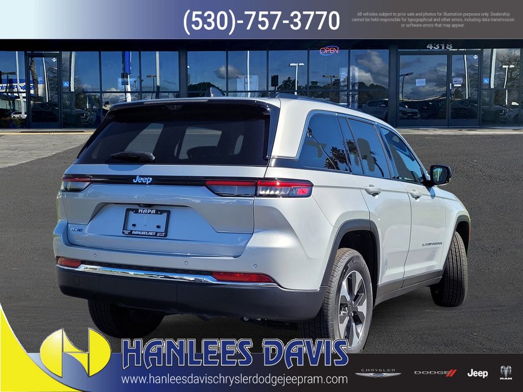 Silver Zynith 2023 Jeep Grand Cherokee 4xe 4WD 8-Speed Automatic 2.0L I4 DOHC 2.0L I4 DOHC, 4WD, 2nd-Row Manual Window Shades, Auto-Dimming Exterior Driver Mirror, Capri Leatherette w/Axis II Seats, Integrated Off-Road Camera, Intersection Collision Assist System, Luxury Tech Group II, Memory Steering Column, ParkSense Front/Rear Park Assist w/Stop, Passive Entry - Front/Rear Doors, Liftgate, Power Tilt/Telescope Steering Column, Quick Order Package 27F, Rain Sensitive Windshield Wipers, Rear Back Up Camera Washer, Rearview Autodim Digital Display Mirror, Surround View Camera System, Ventilated Front Seats, Wireless Charging Pad.