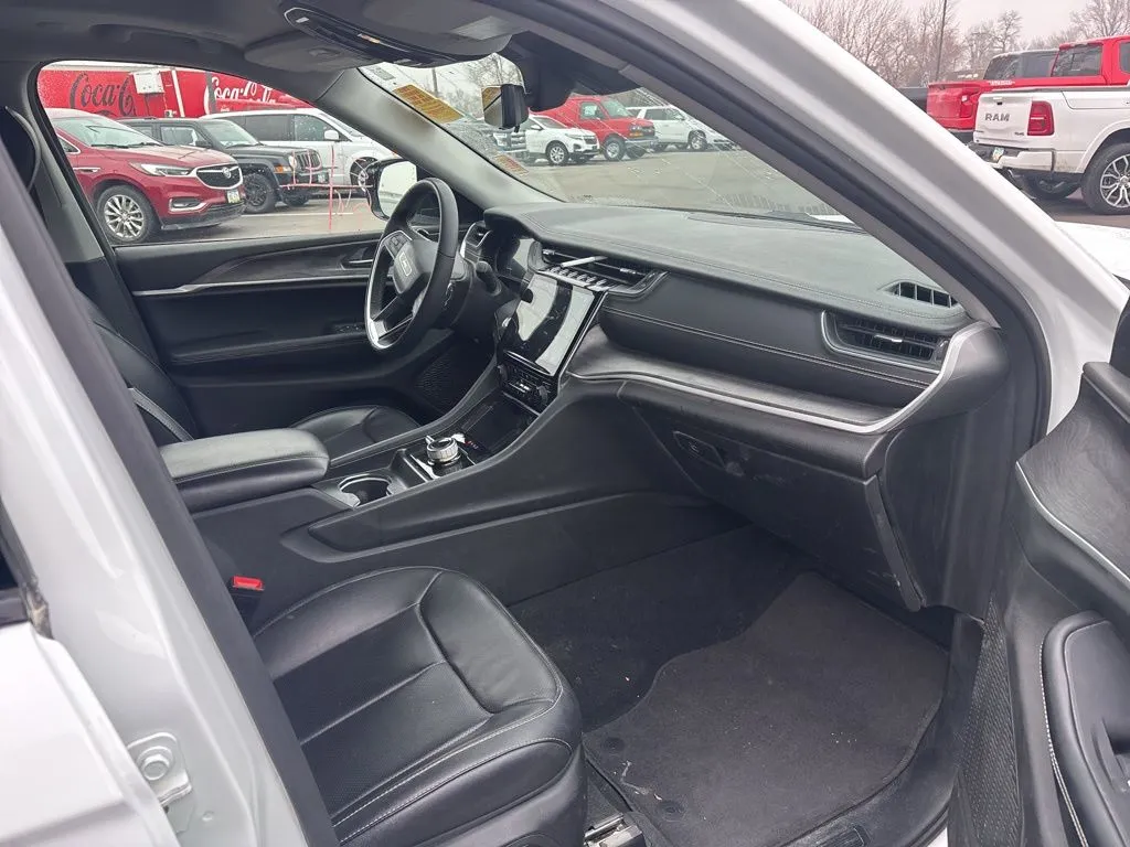 Experience the versatility and luxury of the 2023 Jeep Grand Cherokee L Limited, a standout SUV that combines rugged capability with premium comfort. With its Bright White Clearcoat exterior and sleek Black interior, this used vehicle shows well with 41,321 miles on the odometer. Powered by a responsive 3.6-liter V6 engine producing 293 horsepower, it offers a smooth 8-speed automatic transmission and confident 4WD for all road conditions. The spacious interior seats six comfortably, featuring heated leather seats, memory settings, and a third-row option, making it perfect for family adventures or daily errands. Modern convenience is at your fingertips with Apple CarPlay, Bluetooth, satellite radio, and a 10.1-inch touchscreen navigation system that includes real-time traffic updates. Additional features such as a sunroof, rear A/C, heated rear seats, and WiFi hotspot ensure everyone’s comfort and connectivity. Safety and driver-assist features like adaptive cruise control, blind spot monitor, collision warning, and lane keep assist enhance confidence behind the wheel, while keyless entry and push start add to the ease of use.