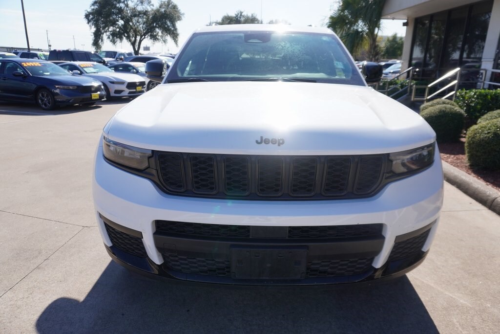This 2023 Jeep Grand Cherokee L Altitude in Bright White Clearcoat includes the following features: 3.6L V6 24V VVT 8-Speed Automatic 4WD Altitude Appearance Package, Quick Order Package 22B Altitude (115V Auxiliary Power Outlet, 3rd Row Charge-Only USB Ports, Black Headliner, Capri Leatherette/Suede Seats, Delete Laredo Badge, Gloss Black Exterior Accents, Heated Front Seats, Heated Steering Wheel, Molded In Color Black/Gloss Black Roof Rails, Power Liftgate, Rain Sensitive Windshield Wipers, Remote Start System, Selectable Tire Fill Alert, Wheels: 18" x 8.0" Fully Painted Aluminum 1, and Wireless Charging Pad), 3.45 Rear Axle Ratio, 3rd row seats: split-bench, 4-Wheel Disc Brakes, 6 Speakers, ABS brakes, Air Conditioning, Alloy wheels, Anti-whiplash front head restraints, Automatic temperature control, Brake assist, Bumpers: body-color, Cloth Seats, Compass, Delay-off headlights, Driver door bin. The vehicle is in Bright White Clearcoat with a black interior. Odometer is 4539 miles below market average! At Mac Haik Ford Pasadena, we believe in customer satisfaction and try to make it our mission that each and every shopper is happy with our service. Drivers in Pasadena and all of Houston's surrounding areas have made the drive to Mac Haik Ford Pasadena again and again. Visit us now and experience our top-class customer service yourself!
