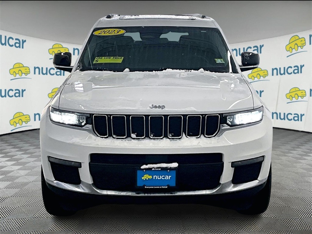 18/25 City/Highway MPG Nucar Automall is proud to present you with another True Market Priced Pre-Owned Vehicle. This 2023 Jeep Grand Cherokee L Limited is loaded with the following Factory Options:Quick Order Package 23E, Navigation System, 2nd Row 60/40 Bench w/Manual Tip/Slide, 2nd Row Seat Center Armrest/Cupholders, 3 Rear Seat Head Restraints, 3.45 Rear Axle Ratio, 3rd row seats: split-bench, 4-Wheel Disc Brakes, 6 Speakers, 7-Passenger Seating, ABS brakes, Active Noise Control System, Air Conditioning, Alloy wheels, AM/FM radio: SiriusXM with 360L, Anti-whiplash front head restraints, Audio memory, Auto High-beam Headlights, Automatic temperature control, Brake assist, Bumpers: body-color, Capri Leatherette Seats, Center Rear 3-Point Seat Belt, Compass, Delay-off headlights, Driver door bin, Driver vanity mirror, Dual front impact airbags, Dual front side impact airbags, Dual-Pane Panoramic Moonroof, Electronic Stability Control, Emergency communication system, Four wheel independent suspension, Front anti-roll bar, Front Bucket Seats, Front Center Armrest w/Storage, Front dual zone A/C, Front fog lights, Front License Plate Bracket, Front reading lights, Fully automatic headlights, Garage door transmitter, Heated door mirrors, Heated front seats, Heated rear seats, Heated steering wheel, Illuminated entry, Interior Rear Facing Camera, Knee airbag, Low tire pressure warning, Manual Fold Seatbacks, Memory seat, Molded In Color Black/Gloss Black Roof Rails, Normal Duty Suspension, Occupant sensing airbag, Outside temperature display, Overhead airbag, Overhead console, Panic alarm, ParkView Rear Back-Up Camera, Passenger door bin, Passenger vanity mirror, Power door mirrors, Power driver seat, Power Liftgate, Power passenger seat, Power steering, Power windows, Radio data system, Radio: Uconnect 5 Nav w/10.1" Display, Rear air conditioning, Rear anti-roll bar, Rear reading lights, Rear window defroster, Rear window wiper, Reclining 3rd row seat, Remote keyless entry, Security system, Speed control, Speed-Sensitive Wipers, Split folding rear seat, Spoiler, Steering wheel mounted audio controls, Tachometer, Telescoping steering wheel, Tilt steering wheel, Traction control, Trip computer, Turn signal indicator mirrors, Variably intermittent wipers, Voltmeter.