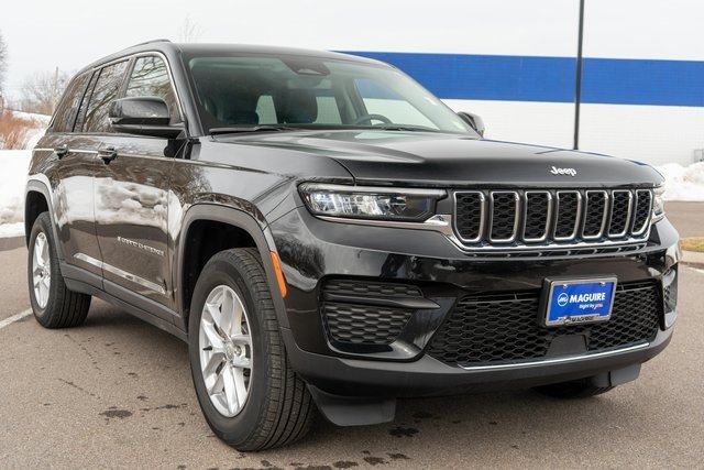 Finished in Diamond Black Crystal Pearlcoat, this 2023 Jeep Grand Cherokee Laredo 4WD delivers refined style, legendary Jeep capability, and modern comfort in one well-rounded SUV. Powered by the proven 3.6L V6 24V VVT engine paired with a smooth 8-Speed Automatic transmission, this Grand Cherokee provides strong performance, confident acceleration, and the traction of Jeeps capable 4WD system, making it perfectly suited for everything from daily commuting to tackling Central New York winter roads. The Grand Cherokee continues Jeeps reputation for combining rugged capability with upscale design. Its bold exterior features the iconic seven-slot Jeep grille, sleek LED lighting, and sculpted body lines that give it a confident and sophisticated presence on the road. The Diamond Black Crystal Pearlcoat finish adds a sleek and timeless look that stands out wherever you go. Inside, the Grand Cherokee Laredo offers a comfortable and thoughtfully designed cabin with high-quality materials and modern technology. Supportive seating, an intuitive infotainment system, and convenient connectivity features help keep drivers and passengers comfortable and connected on every drive. With generous passenger space and flexible cargo capacity, it's ready for road trips. If you're looking for an SUV that blends premium comfort, modern technology, and authentic Jeep capability with a car or your vehicle.