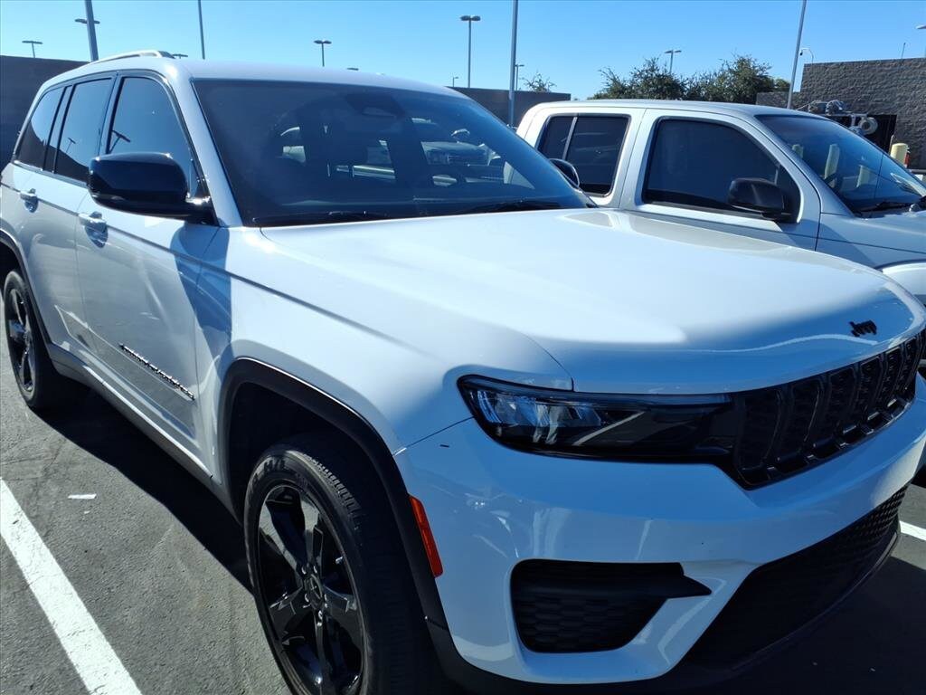 This 2023 Jeep Grand Cherokee Altitude is a state-of-the-art motorcar that has been meticulously maintained and driven for 45,185 miles. Boasting a 3.6 liter Pentastar V6 293hp 260 lb-ft direct injection engine, this four wheel drive vehicle has impressive fuel economy of 19 mpg in the city and 26 mpg on the highway. It also features a touch screen display, Bluetooth audio connection, blind spot sensor, hill start assist, full time four wheel drive, Apple Carplay ready, Bluetooth phone connectivity, leather-trimmed seats, and leather seats for added comfort and convenience. With its advanced technology and luxurious features, this car is sure to turn heads wherever it goes! Contact Details: Big Two Toyota, 1250 S. Gilbert Road, Chandler, AZ, 85286, sales@bigtwo.com, 4808986000.