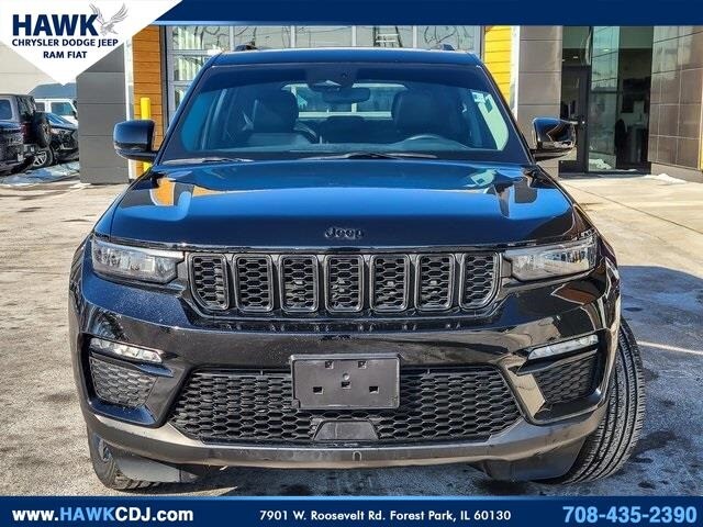 2023 Jeep Grand Cherokee Limited Limited Diamond Black Crystal Pearlcoat 3.6L V6 24V VVT 4WD Clean CARFAX. Recent Arrival! Come see this 2023 Jeep Grand Cherokee Limited! It's the one you've been looking for! This Grand Cherokee comes equipped with these options: 4WD, Auto High-beam Headlights, Automatic temperature control, Black Appearance Package, Dual-Pane Panoramic Sunroof, Front dual zone A/C, Front fog lights, Fully automatic headlights, Gloss Black Exterior Accents, Heated door mirrors, Heated front seats, Heated rear seats, Heated steering wheel, Molded In Color Black/Gloss Black Roof Rails, Navigation System, Power driver seat, Power Liftgate, Quick Order Package 23E, Wheels: 20" x 8.5" Gloss Black Painted Aluminum. Priced below KBB Fair Purchase Price! 8-Speed Automatic 19/26 City/Highway MPG Visit Hawk CDJR for a large selection of new, used and certified cars, trucks and SUVs by top manufacturers. Our sales staff will help you find that new or used car you have been searching for in Forest Park, Chicago and Chicagoland. For years, our financial staff at Hawk CDJR has offered expert advice for those seeking a great Dodge, Jeep, Ram or Chrysler car loan or lease. You can reach Hawk CDJR any time by filling out our contact form, by calling us at (708) 405-9044, or simply visiting our Chicago area Dodge, Jeep, Ram & Chrysler dealership at 7911 W Roosevelt Rd, Forest Park, IL 60130. A negotiable administration fee, up to $115, may be added to the price of the vehicle.