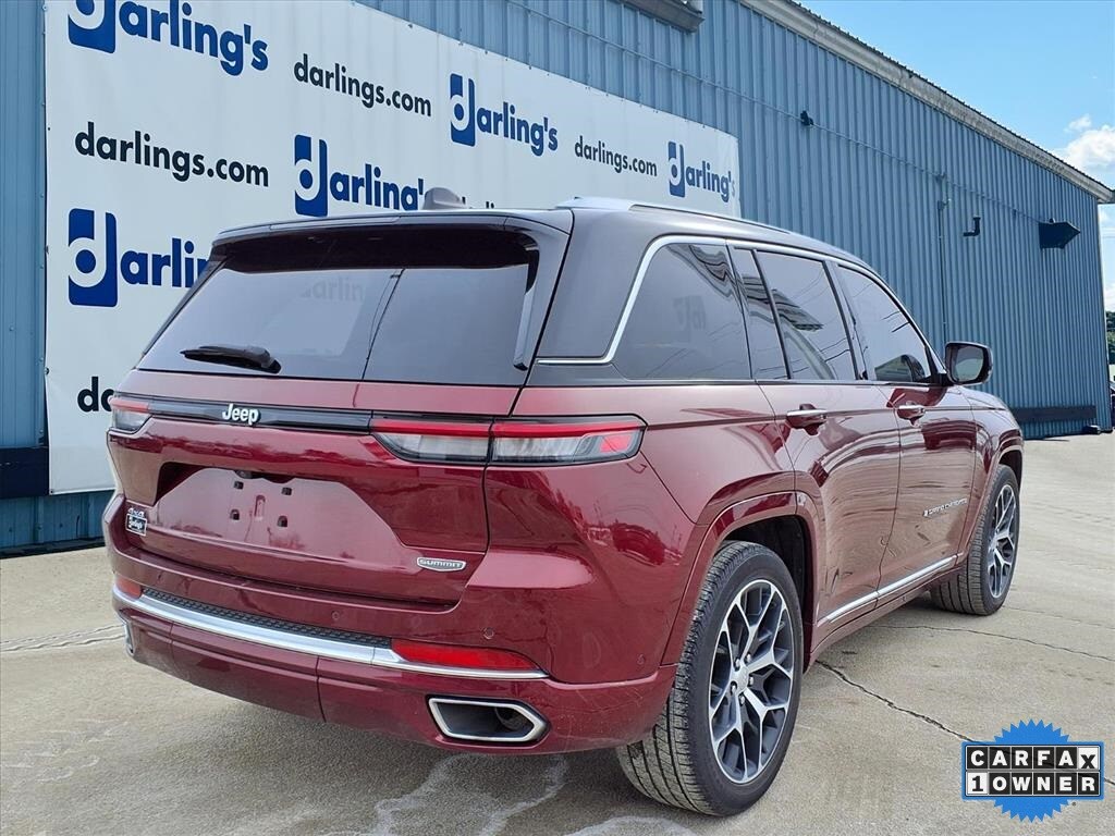 Velvet Red Pearlcoat 2023 Jeep Grand Cherokee Summit Reserve. 4WD Carfax One-Owner. 8-Speed Automatic 3.6L V6 24V VVT 4WD. Darling's Certified Pre-Owned - Benefits of buying a Darling's Certified Pre-Owned vehicle include one of the following depending on brand: - 6-year*/100,000 total odometer mile (whichever occurs first) powertrain limited warranty - 7-year*/100,000 total odometer mile (whichever occurs first) powertrain limited warranty or a 10-year*/100,000 total odometer mile (whichever occurs first) powertrain limited warranty - Thorough 80-point inspection -- Any worn parts are reconditioned or replaced to meet Darling's Certified standards - Free Vehicle History Reports are available at dealerships and online. Recent Arrival! Odometer is 9977 miles below market average! 19/26 City/Highway MPG.