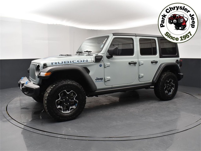Our Accident Free, One Owner 2023 Jeep Wrangler 4xe Rubicon 4X4 can plug in for powering past the pavement in Earl! Motivated by a TurboCharged 2.0 Liter 4 Cylinder and 2 Electric Motors supplying a combined 375hp to an 8 Speed Automatic transmission. A high-performance plug-in hybrid, this Four Wheel Drive SUV blends authentic Rubicon capability, a gas-hybrid mode that returns nearly 20mpg combined, and an EV driving range of nearly 22 miles. Stunning Jeep style comes into view with LED lighting, fog lamps, hood vents, robust skid plates, blue tow hooks, 20-inch alloy wheels, protective rock rails, and a removable top and doors. Ready to rock crawl, our Rubicon cabin treats you to supportive cloth seats, a premium-wrapped steering wheel, automatic climate control, cruise control, keyless access/ignition, and trail-friendly technologies. Leading the way is a Uconnect infotainment system with a 7-inch driver display, an 8.4-inch touchscreen, full-color navigation, WiFi compatibility, voice command, Apple CarPlay/Android Auto, Bluetooth, Off-Road Info Pages, and an Alpine sound system. Jeep takes an intelligent approach to safety with a rearview camera, hill-start assist, ABS, stability/traction control, tire pressure monitoring, trailer sway damping, advanced airbags, and more. Our Wrangler 4xe Rubicon is the plug-in hybrid that's pure Jeep! Save this Page and Call for Availability. We Know You Will Enjoy Your Park Chrysler Jeep Used Test Drive Towards Ownership!