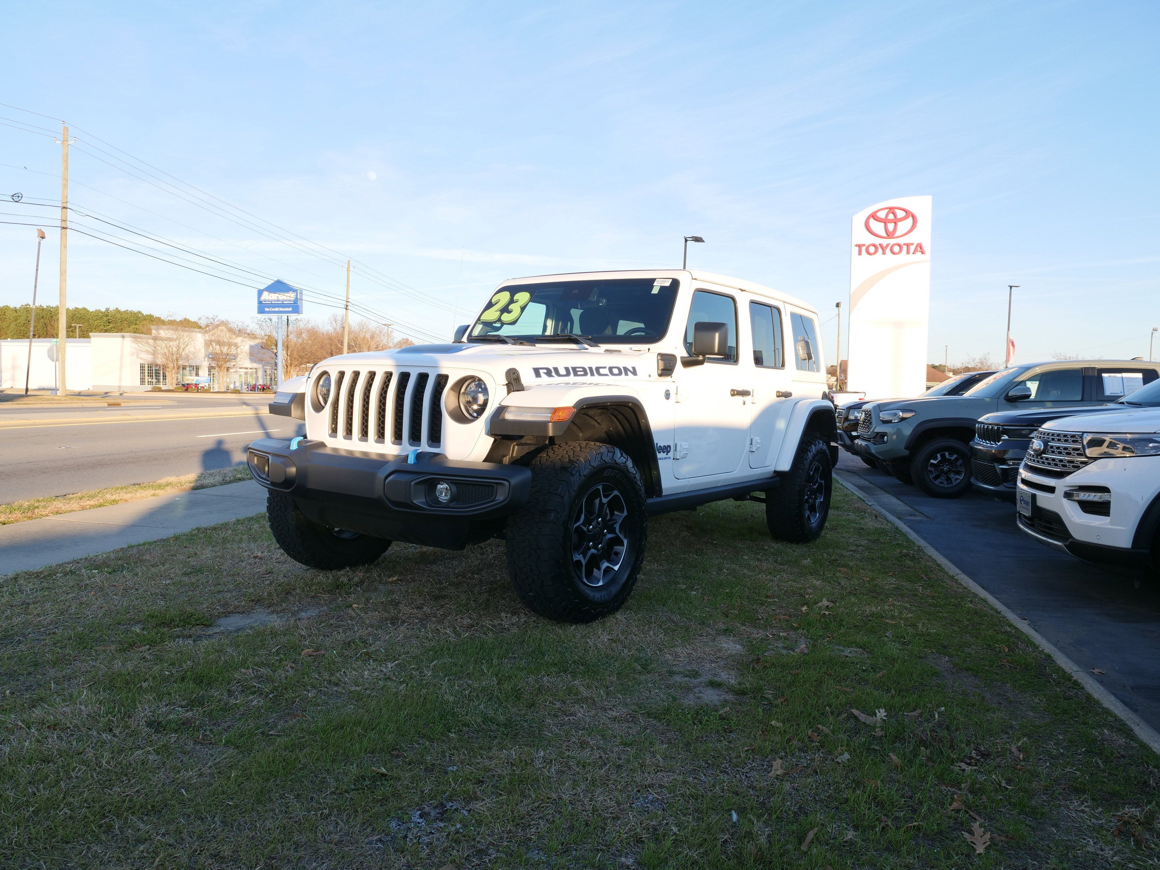 CARFAX One-Owner. Bright White Clearcoat 2023 Jeep Wrangler Rubicon 4xe 4WD 8-Speed Automatic 2.0L I4 DOHC 2.0L I4 DOHC, ABS brakes, Alloy wheels, Compass, Electronic Stability Control, Front dual zone A/C, Heated door mirrors, Illuminated entry, Low tire pressure warning, Navigation System, ParkView Rear Back-Up Camera, Passenger door bin, Remote keyless entry, Traction control, 4-Wheel Disc Brakes, 4.10 Rear Axle Ratio, 9 Speakers, Air Conditioning, AM/FM radio: SiriusXM, Apple CarPlay/Android Auto, Auto-dimming Rear-View mirror, Automatic temperature control, Brake assist, Delay-off headlights, Driver door bin, Driver vanity mirror, Dual front impact airbags, Dual front side impact airbags, Emergency communication system: SiriusXM Guardian, Front anti-roll bar, Front Bucket Seats, Front Center Armrest w/Storage, Front fog lights, Front reading lights, Fully automatic headlights, Garage door transmitter, Integrated roll-over protection, Occupant sensing airbag, Outside temperature display, Panic alarm, Passenger vanity mirror, Performance Suspension, Power door mirrors, Power steering, Power windows, Premium Cloth Low-Back Bucket Seats, Radio data system, Radio: Uconnect 4C Nav w/8.4 Display, Rear anti-roll bar, Rear reading lights, Security system, Speed control, Split folding rear seat, Steering wheel mounted audio controls, Tachometer, Telescoping steering wheel, Tilt steering wheel, Trip computer, Variably intermittent wipers, Voltmeter, and Wheels: 17 x 7.5 Machined with Black. Recent Arrival! ADVERTISED PRICE INCLUDES $1,000 FINANCE ASSIST and $500 TRADE ASSIST. Customer must finance with dealership preferred lender and trade in a vehicle to qualify.