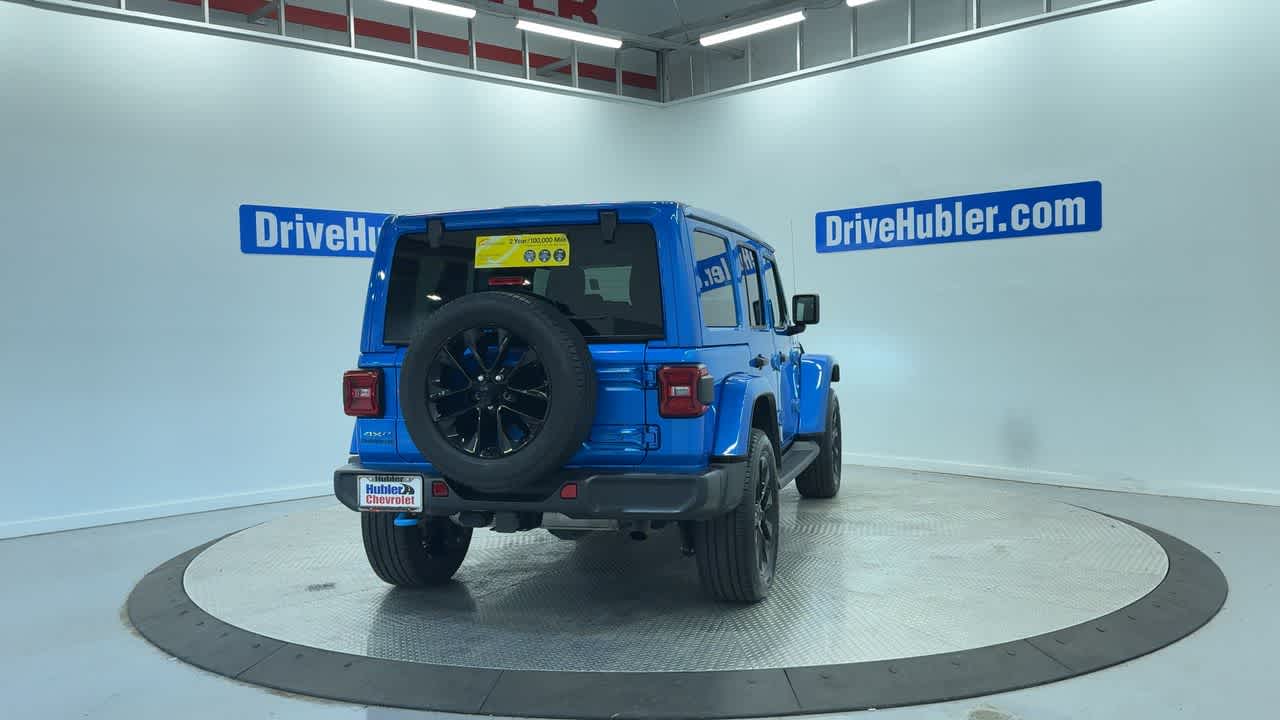GREAT MILES 36,049! Hydro Blue Pearlcoat exterior and Black interior, Sahara trim. Heated Leather Seats, Navigation, Sunroof, 4x4, Turbo Charged, Alloy Wheels, Trailer Hitch, SKY 1-TOUCH POWER TOP, ENGINE: 2.0L I4 DOHC DI TURBO PHEV, TRANSMISSION: 8-SPEED AUTO 8P75PH PHEV. Jeep Sahara with Hydro Blue Pearlcoat exterior and Black interior features a 4 Cylinder Engine with 375 HP at 5250 RPM*. This Wrangler 4xe is priced $4,600 below J.D. Power Retail. Pricing analysis performed on 3/21/2026. Horsepower calculations based on trim engine configuration.