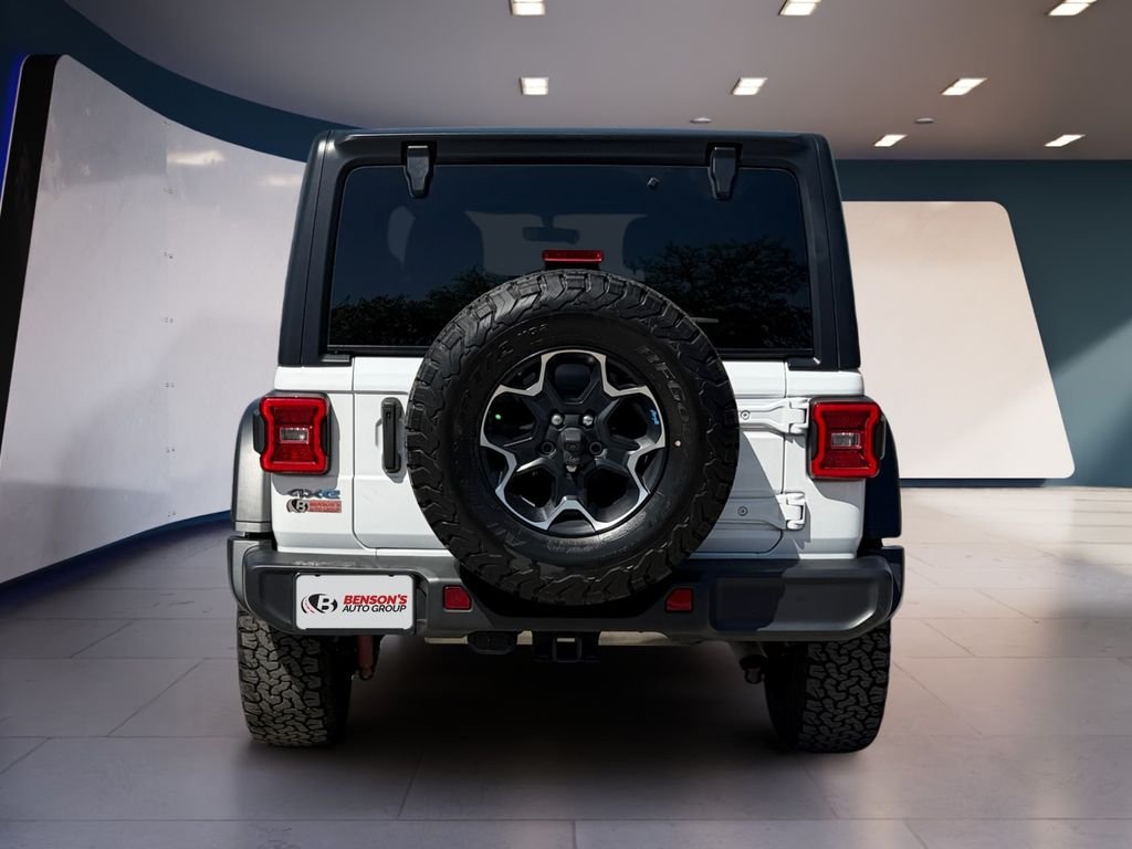 CARFAX One-Owner. Bright White Clearcoat 2023 Jeep Wrangler 4WD 8-Speed Automatic 2.0L I4 DOHC 2.0L I4 DOHC, #1 Seat Foam Cushion, 20th Anniversary Rubicon 4xe Suspension, 4-Wheel Disc Brakes, 4.10 Rear Axle Ratio, 7 & 4 Pin Wiring Harness, 700 Amp Maintenance Free Battery, 9 Speakers, ABS brakes, Air Conditioning, Alloy wheels, AM/FM radio: SiriusXM, Apple CarPlay/Android Auto, Auto-dimming Rear-View mirror, Automatic temperature control, Auxiliary Switches, Black 3-Piece Hard Top, Brake assist, Class II Receiver Hitch, Compass, Corning Gorilla Glass, Delay-off headlights, Driver door bin, Driver vanity mirror, Dual front impact airbags, Dual front side impact airbags, Electronic Stability Control, Emergency communication system: SiriusXM Guardian, Freedom Panel Storage Bag, Front anti-roll bar, Front Bucket Seats, Front Center Armrest w/Storage, Front dual zone A/C, Front fog lights, Front License Plate Bracket, Front reading lights, Fully automatic headlights, Garage door transmitter, Heated door mirrors, Illuminated entry, Integrated Off-Road Camera, Integrated roll-over protection, Leather Wrapped Park Brake Handle, Leather Wrapped Shift Knob, Low tire pressure warning, MOPAR 3 Bar Bumper Hoop, MOPAR All-Weather Floor Mats, MOPAR Rubicon 20th Anniversary Tool Kit, Nappa Leather Seats, Navigation System, Occupant sensing airbag, Outside temperature display, Panic alarm, ParkView Rear Back-Up Camera, Passenger door bin, Passenger vanity mirror, Performance Suspension, Power door mirrors, Power steering, Power windows, Premium Cloth Low-Back Bucket Seats, Premium Door Trim Panel, Premium Wrapped Red I/P Bezels, Quick Order Package 29T Rubicon 20th Anniversary, Quick Order Package 29V Rubicon, Radio data system, Radio: Uconnect 4C Nav w/8.4" Display, Rear anti-roll bar, Rear reading lights, Rear Window Defroster (Rear Window W W W W R) (Rear Window Window) (Rear Window Wiper/Washer) (Rear Window Defroster), Red Interior Accents (Red Seat Belt), Remote keyless entry (Remote keyless entry), Rubicon 20th Anniversary (Rubicon 20th Anniversary Grille) (Rubicon 20th Anniversary Shifter Medallion) (Rubicon 20th Anniversary Side Hood Decal 4xe) (Rubicon 20th Anniversary Swing Gate Plaque) (Rubicon 20th Anniversary Top Hood Decal 4xe) (Security system), Speed control (Speed control), Split folding rear seat (Split folding rear seat), Steel Bumper Group (Steel Front Bumper) (Steel Rear Bumper), Steering wheel mounted audio controls (Steering wheel mounted audio controls), Tachometer (Tachometer), Telescoping steering wheel (Telescoping steering wheel), Tilt steering wheel (Tilt steering wheel), Traction control (Traction control), Trailer Tow & Aux Switch Group (Trailer Tow & Aux Switch Group), Trip computer (Trip computer), Variably intermittent wipers (Variably intermittent wipers), Voltmeter (Voltmeter), Wheels: 17" x 7.5" Black Beadlock Capable (Wheels: 17" x 7.5" Machined w/Black Pockets).