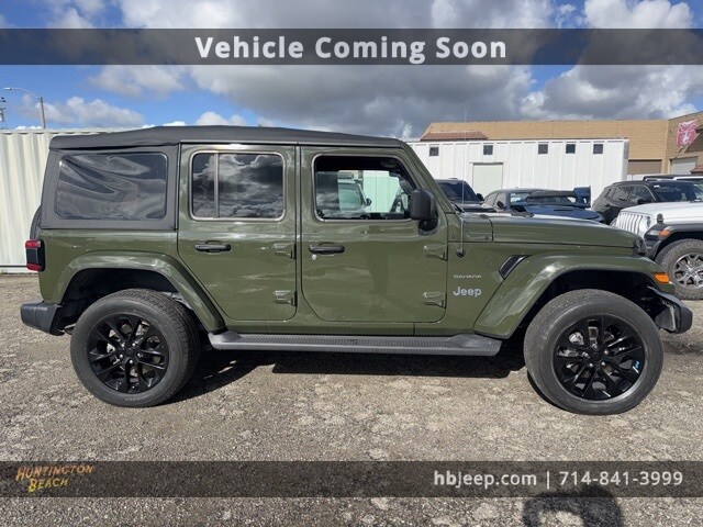 2023 Jeep Wrangler Sarge Green Clearcoat 8-Speed Automatic 2.0L I4 DOHC Bluetooth wireless / hands free, back up camera, Apple CarPlay & Android Auto, 2.0L I4 DOHC, Navigation System, Quick Order Package 29P Sahara. This vehicle is coming soon, it may not be available for show or test drive. This vehicle is going through a safety inspection and if necessary a smog test. Pending inspection, vehicle may not become available for sale. We are located at: 16701 Beach Blvd, Huntington Beach, CA 92647. All pricing and advertised prices for any/all vehicles offered for sale does not include dealer installed accessories which can be purchased for an additional cost. We only provide 4 gallons of gas at purchase. No sales to dealers, brokers or exporters. For out of state purchase, customers must be present to purchase. If shipping is required, dealership must facilitate; no exceptions. Please contact us for special multi-vehicle or fleet pricing. Prices are plus government fees and taxes, any finance charges, $85 documentary fee, $33 electronic registration fee, any emission testing charge and $1.75 per new tire state tire fee. All vehicles are subject to prior sale. We do not take deposits on vehicles. Leasing & financing available on approved credit. Trade-ins accepted. The estimated selling price that appears after calculating dealer offers is for informational purposes, only. See dealer for qualifications and complete details. Images, prices, and options shown, including vehicle color, trim, options, pricing and other specifications are subject to availability, incentive offerings, current pricing and credit worthiness.