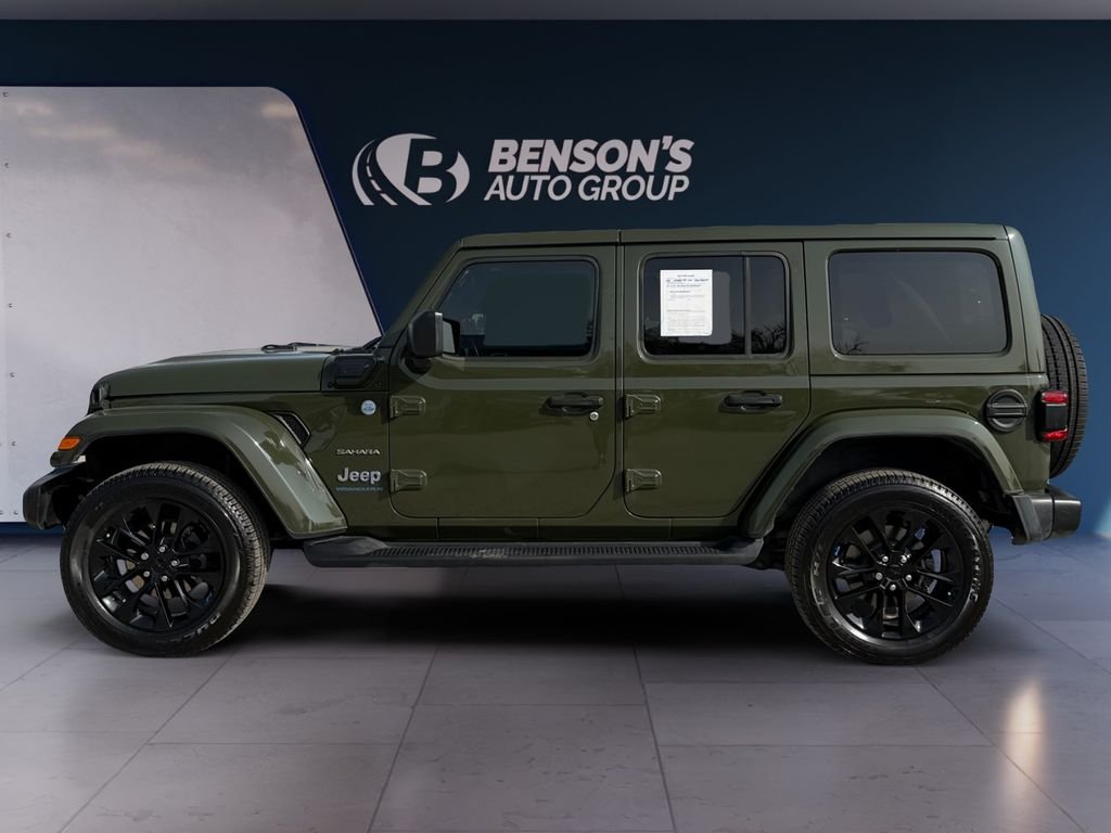 CARFAX One-Owner. Sarge Green Clearcoat 2023 Jeep Wrangler Sahara 4xe 4WD 8-Speed Automatic 2.0L I4 DOHC 2.0L I4 DOHC, 3.73 Rear Axle Ratio, 4-Wheel Disc Brakes, 7 & 4 Pin Wiring Harness, 700 Amp Maintenance Free Battery, 9 Speakers, ABS brakes, Air Conditioning, Alloy wheels, AM/FM radio: SiriusXM, Apple CarPlay/Android Auto, Auto-dimming Rear-View mirror, Automatic temperature control, Auxiliary Switches, Body Color 3-Piece Hard Top, Brake assist, Class II Receiver Hitch, Cold Weather Group, Compass, Delay-off headlights, Driver door bin, Driver vanity mirror, Dual front impact airbags, Dual front side impact airbags, Electronic Stability Control, Emergency communication system: SiriusXM Guardian, Freedom Panel Storage Bag, Front anti-roll bar, Front Bucket Seats, Front Center Armrest w/Storage, Front dual zone A/C, Front fog lights, Front License Plate Bracket, Front reading lights, Fully automatic headlights, Garage door transmitter, Heated door mirrors, Heated Front Seats, Heated Steering Wheel, Illuminated entry, Integrated roll-over protection, Integrated Voice Command w/Bluetooth, Leather Shift Knob, Low tire pressure warning, Media Hub - 2 USBs (Both Charge Only), MOPAR All-Weather Floor Mats, MOPAR Hardtop Headliner, Navigation System, Occupant sensing airbag, Outside temperature display, Panic alarm, ParkView Rear Back-Up Camera, Passenger door bin, Passenger vanity mirror, Power door mirrors, Power steering, Power windows, Premium McKinley Trimmed Seats, Quick Order Package 29P Sahara, Radio data system, Radio: Uconnect 4C Nav w/8.4" Display, Rear anti-roll bar, Rear reading lights, Rear seat center armrest, Rear Window Defroster, Rear Window Wiper/Washer, Remote keyless entry, Remote Start System, Security system, Side Steps, SiriusXM Travel Link, Speed control.