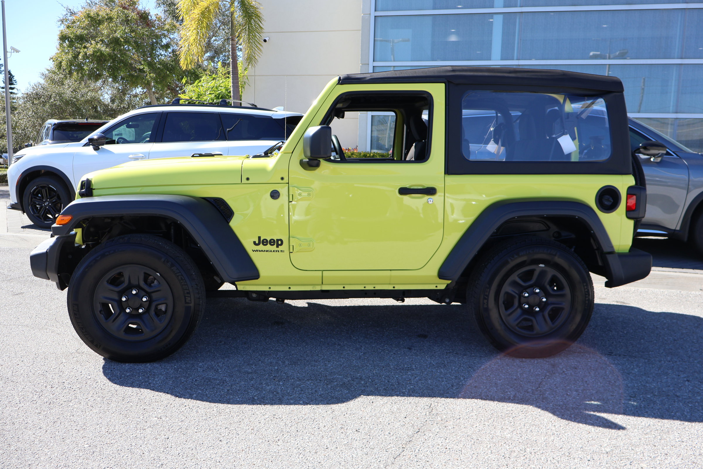 Turn heads and embrace the spirit of adventure with this vibrant High Velocity Clearcoat 2023 Jeep Wrangler Sport. This eye-catching yellow SUV is the ultimate symbol of fun and freedom, perfect for exploring the beaches of Clearwater or hitting the off-road trails. As a one-owner vehicle with a clean history and no damage, it has been exceptionally well-cared for and arrives with all its original records, books, and keys. Under the hood, you will find the legendary 3.6L V6 engine, a true workhorse that provides 285 horsepower for a confident and capable drive. This Wrangler features a smooth 8-speed automatic transmission and a specialized anti-spin differential rear axle, which helps you maintain traction on slippery or uneven surfaces. Whether you are driving through a summer rainstorm or navigating sandy paths, the Four-Wheel Drive system is ready to keep you moving forward. The interior of this Sport model is designed to be both functional and connected. You can easily link your smartphone using Apple CarPlay or Android Auto, allowing you to access your favorite music and maps through the Uconnect 7-inch touchscreen. Steering wheel mounted audio controls and integrated voice command with Bluetooth ensure that you can keep your hands on the wheel and your focus on the road while staying entertained. Safety and convenience are key parts of the Wrangler experience. The ParkView rear back-up camera provides a clear view of what is behind you, making parking and reversing a breeze. The cabin also features integrated roll-over protection and multiple airbags for your peace of mind. For those who enjoy extra utility, this Jeep includes front fog lights for better visibility and a 170-amp alternator to power all your favorite adventure accessories. At INFINITI of Clearwater, we love offering vehicles that bring a little extra excitement to your life. This 2023 Jeep Wrangler is a recent arrival that stands out not just for its bold color, but for its rugged reliability. We invite you to come see this high-energy SUV in person and experience the open-air freedom that only a Jeep can provide. Our team is here to make your purchase simple, straightforward, and fun.