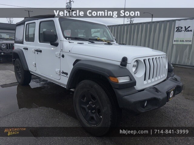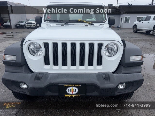 2023 Jeep Wrangler Bright White Clearcoat 8-Speed Automatic 3.6L V6 24V VVT Quick Order Package 25B Sport. This vehicle was a prior rental. Our vehicles are value priced and move quickly. Be sure to call us to confirm availability and to schedule a hassle free test drive! We are located at: 16701 Beach Blvd, Huntington Beach, CA 92647. All pricing and advertised prices for any/all vehicles offered for sale does not include dealer installed accessories which can be purchased for an additional cost. We only provide 4 gallons of gas at purchase. No sales to dealers, brokers or exporters. For out of state purchase, customers must be present to purchase. If shipping is required, dealership must facilitate; no exceptions. Please contact us for special multi-vehicle or fleet pricing. Prices are plus government fees and taxes, any finance charges, $85 documentary fee, $33 electronic registration fee, any emission testing charge and $1.75 per new tire state tire fee. All vehicles are subject to prior sale. We do not take deposits on vehicles. Leasing & financing available on approved credit. Trade-ins accepted. The estimated selling price that appears after calculating dealer offers is for informational purposes, only. See dealer for qualifications and complete details. Images, prices, and options shown, including vehicle color, trim, options, pricing and other specifications are subject to availability, incentive offerings, current pricing and credit worthiness. We offer a 3 day unconditional money back guarantee on all vehicles. This $250 option provides the peace of mind of being able to bring the car back for a full refund with no questions asked. Price, product or you just change your mind!