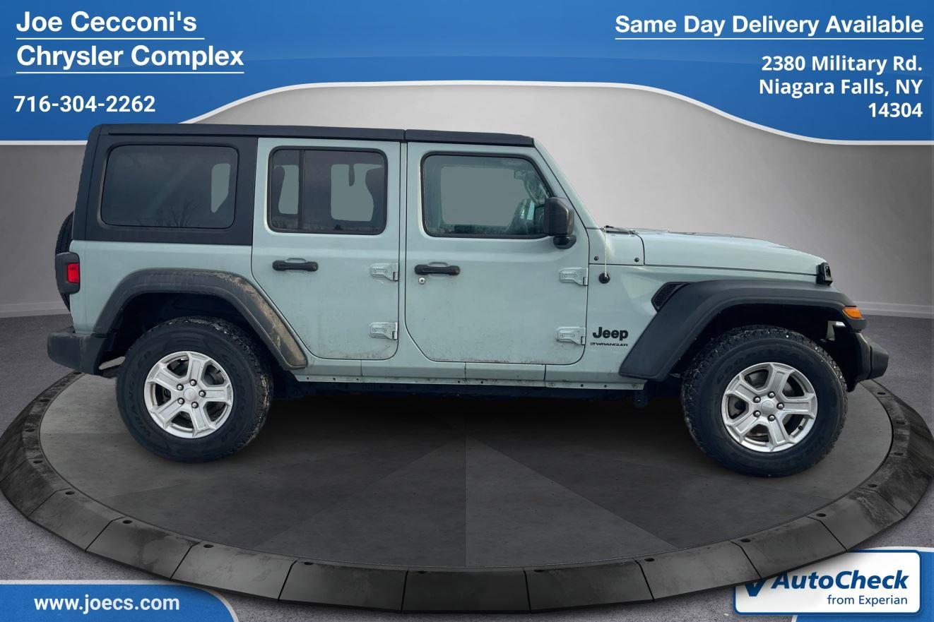 Earl Clearcoat 2023 Jeep Wrangler Sport S with 13,385 miles has the style and comfort to fit your lifestyle! No Accidents! One Owner! This vehicle is equipped with Quick Order Package 22S Sport S, Sport S, Deep Tint Sunscreen Windows, Sun Visors with Illuminated Vanity Mirrors, Power Heated Mirrors, Remote Keyless Entry, Speed Sensitive Power Locks, Front 1-Touch Down Power Windows, Automatic Headlamps, Security Alarm, Premium Wrapped Steering Wheel. Cloth upholstery is comfortable in all seasons. 6-way driver seat. First-row sunroof. Skid plates.