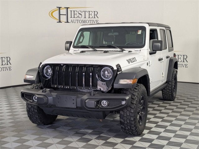 Bright White Clearcoat 2023 Jeep Wrangler Willys 4WD 8-Speed Automatic 2.0L I4 DOHC. One owner accident free Carfax, lifetime engine guarantee. Thank you for choosing John Hiester Chevrolet. Proudly serving Fuquay Varina, Holly Springs, Cary, Apex, Raleigh, Durham, Fayetteville, Sanford, Pinehurst, Southern Pines, Pittsboro, Lillington, Angier, Dunn, Erwin, Benson, and surrounding areas. The team is excited and dedicated to making sure every customer has an unparalleled buying experience. Elevate your driving experience today! Ask us about our pre-owned vehicles that come with our Dealership for Life benefits. With over 1000 exceptional vehicles to choose from and the ability to acquire every used make and model, we are confident you, your family and friends will be 100% satisfied with the service, selection, and deals. Many of our customers love the off-site test drives we offer and at home deliveries. Please call us at 919-346-6312 and experience world class customer service. Get off your Kiester and come to Hiester! Price excludes Tax, Title and $799 processing fee. See dealer for details.