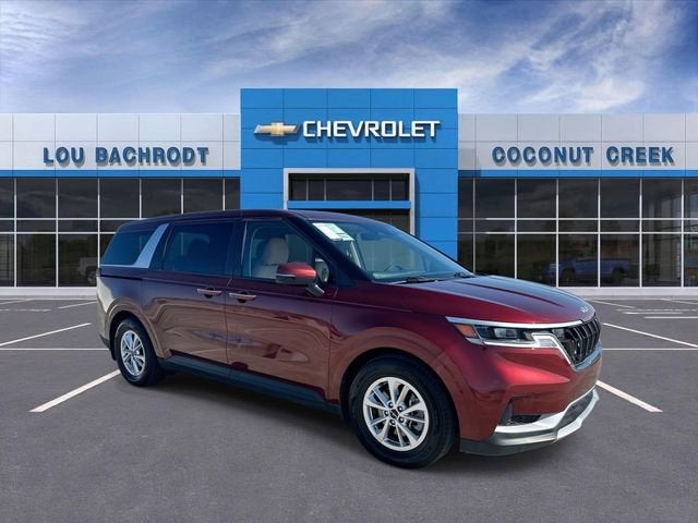 Recent Arrival! 2023 Kia Carnival LX Flare Red FWD V6 8-Speed Automatic. At Lou Bachrodt Chevrolet, we offer the lowest rate financing available for both approved and challenged credit. Please note that not all consumers will qualify for these rates, and the interest rate presented is an estimate. Please see the dealer for further details. Pre-delivery service fee of $1,298, a private tag agency fee of $189 and a electronic registration filing fee of $598 which these charges represent cost and profits to the dealer for items, services and documents related to the sale, tax, tag/registration fee and any finance charges are not included in the quoted price. Dealer savings / advertised price may include certain incentives such as dealer financing, trade-in rebates, etc. Price excludes dealer-installed options or benefits.