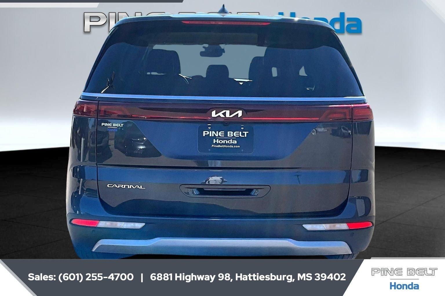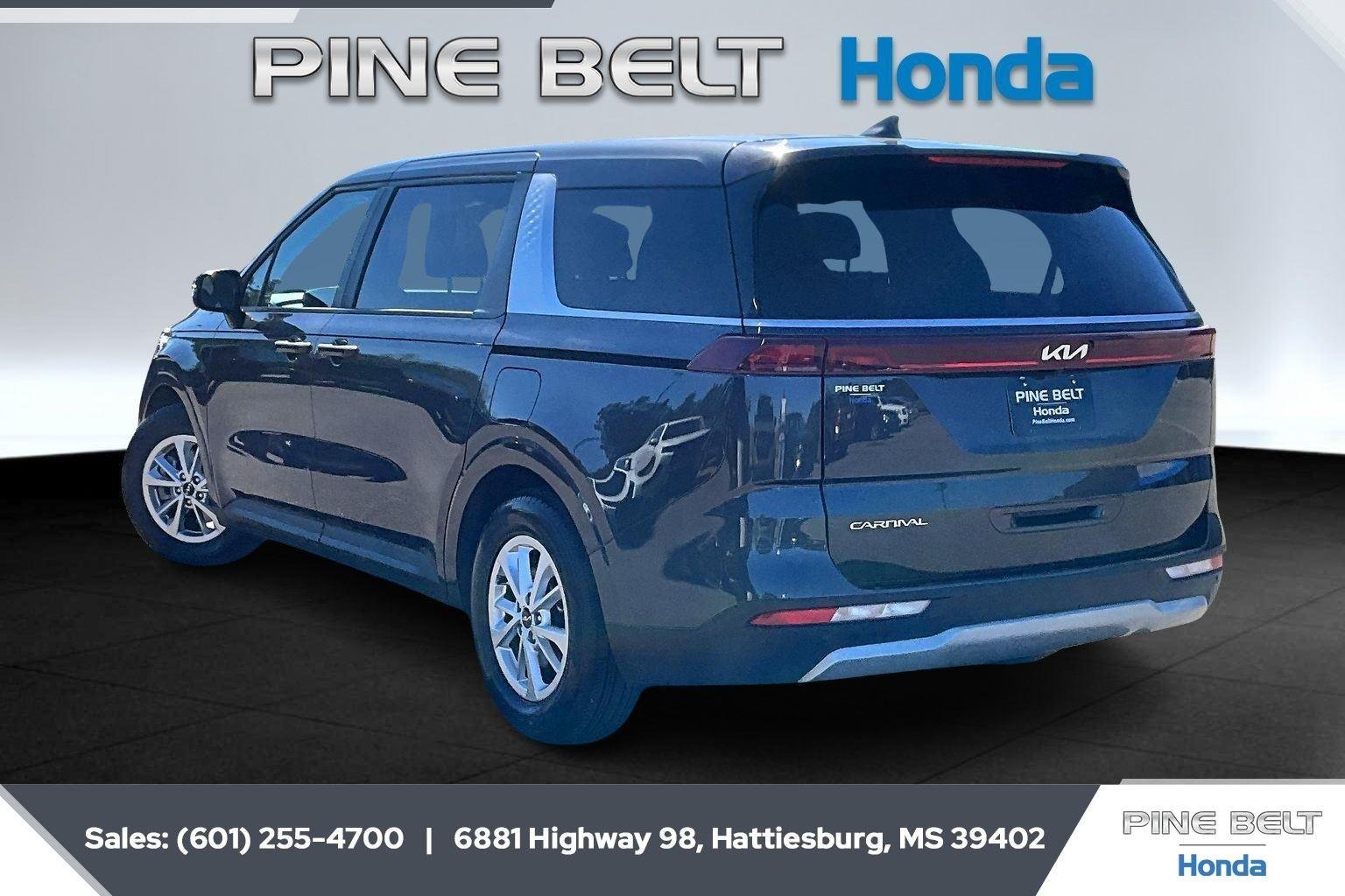 Thank you for choosing Pine Belt Honda, this Panthera Metal 2023 Kia Carnival LX is a great choice! Check out the following: City 19/ Hwy 26. Thank you for stopping by Pine Belt Honda. We are your Hattiesburg Honda Dealership specializing in new and pre-owned Honda vehicles, Honda service & Honda parts. Our knowledgeable sales staff have been trained and certified to provide amazing customer service. Our Hattiesburg Honda Dealership has been selling and servicing the Hattiesburg area for a long time. Receive a vehicle quote and schedule a service appointment all online! Your Hattiesburg Honda Dealership sells reliable and fuel efficient cars! Come visit our show room today! Call 601-582-8261 today to schedule your test drive!