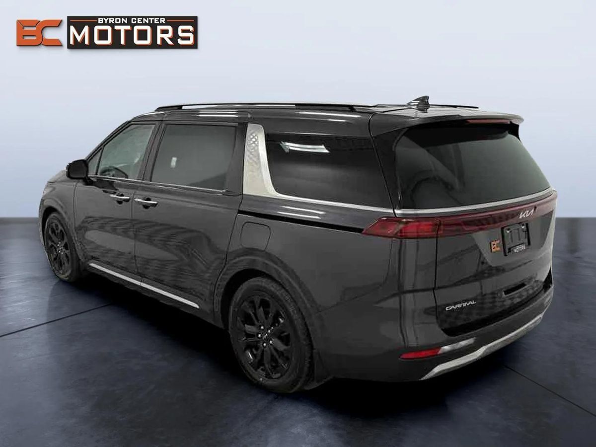 Our poised One Owner 2023 Kia Carnival MPV SX Prestige is here to pamper your family with a premium Panthera Metal design! Motivated by a 3.5 Liter V6 that generates 290hp paired to an 8 Speed Automatic transmission for powerful capability. This Front Wheel Drive multipurpose vehicle also returns nearly 26mpg on the highway with a comfortable ride whether you're commuting, carpooling, or camping out. Commanding good looks are standard with our Carnival's dual sunroofs, LED lighting, fog lamps, power-sliding side doors, a hands-free liftgate, and 19-inch gloss-black alloy wheels. You and your loved ones can relax in style in our SX Prestige cabin. It boasts heated/ventilated leather front seats, second-row VIP Lounge seats, a versatile third row, a heated leather steering wheel, tri-zone automatic climate control, and in-car camera/intercom systems. A digital dashboard is your mobile command post with a 12.3-inch driver display, a 12.3-inch touchscreen, full-color navigation, Android Auto®, Apple CarPlay®, WiFi compatibility, Bluetooth®, voice control, wireless charging, and Bose audio. Kia helps keep you moving safely, thanks to Highway Driving Assist, adaptive cruise control, front/rear automatic braking, blind-spot monitoring, lane-keeping assistance, a rearview camera, and much more. Your whole crew can enjoy our Carnival SX Prestige with features like these! Save this Page and Call for Availability. We Know You Will Enjoy Your Byron Center Motors Test Drive Towards Ownership!