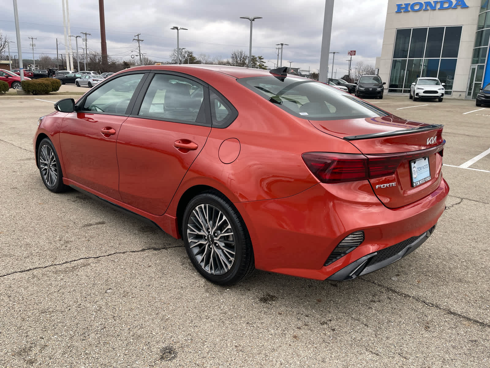 FUEL EFFICIENT 39 MPG Hwy/28 MPG City! Clean, CARFAX 1-Owner. Navigation, Cross-Traffic Alert, Lane Keeping Assist, Dual Zone A/C, Keyless Start, Satellite Radio, iPod/MP3 Input, Back-Up Camera, Aluminum Wheels, Non-Smoker vehicle. Kia GT-Line with Fire Orange exterior and Black interior features a 4 Cylinder Engine with 147 HP at 6200 RPM. Reduced from $19,898. This Forte is priced $1,400 below J.D. Power Retail. Its All Good At Tom Wood!