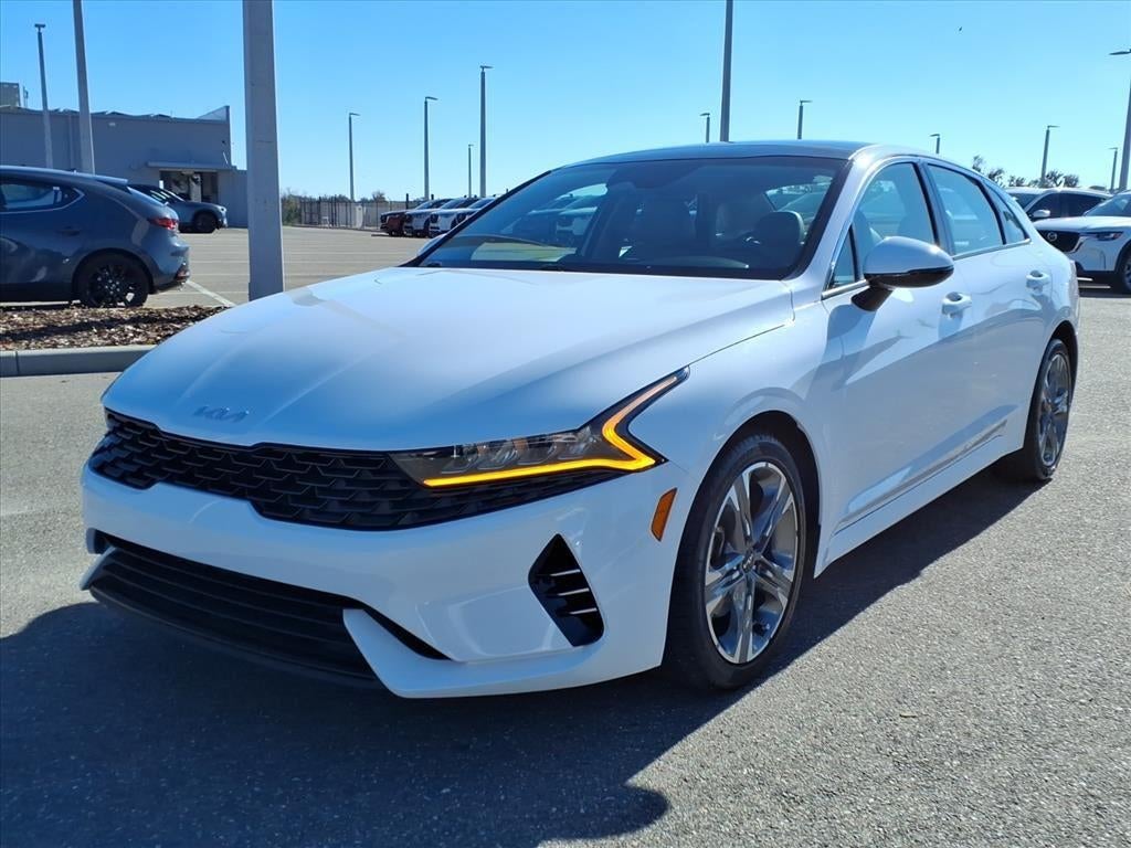 This 2023 Kia K5 EX, has a Glacial White Pearl exterior and an Ash interior color. 26,041 miles. Stock Number PG181881. You can connect with us by calling (863) 274-7240. No Accidents! One Owner! Forward collision mitigation is always looking ahead. Pedestrians don't always stop, look, and listen, but with Pedestrian Impact Prevention, your vehicle is equipped to better see them and avoid them. Hands-on cruise control. Set it and forget it. Road trips used to be stressful. Cruise control only managed speed, but not distance or safety. Now, with hands-on cruise control, simply set your desired speed and let sensor technology maintain a safe distance between you and surrounding vehicles. It slows you down; speeds you up and even keeps you in your own lane. Smart device mirroring brings together safety and convenience by making it easier to find what you're looking for while keeping your eyes on the road. We price our cars, not our Customers. Our Best Price is clearly marked on every vehicle.