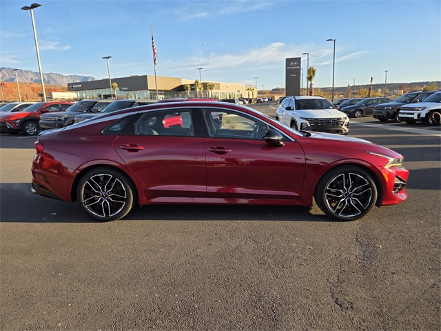 At Findlay Hyundai we know your time and money is valuable. That's why we advertise all our pre-owned vehicles with the best price right up front! Our Sales team is non-commissioned based, so their focus is to help you find the car that best fits your wants and needs! No hidden fees or games. You can pay cash, finance with us, or finance on your own. We can finance through your preferred bank or credit union directly from the dealership saving you an extra trip. 2023 Kia K5 GT GT1 PKG 2.5L I4 DGI Turbocharged DOHC 16V LEV3-ULEV70 290hp 8 Speed Dual Clutch FWD. For more information about this vehicle or to schedule a test drive, please contact our Sales staff at #435-688-7272 or stop by our brand new store located at 1145 E Twin Rocks Cove, Washington, UT 84780! Hablamos Espanol. This Kia K5 GT is equipped with the following features: GT1 Package (Active Sound Design, Auto Up/Down Rear Windows, Bose Premium Audio, Forward Collision Avoidance-Assist, Heated Steering Wheel, Highway Driving Assist, Leather-Wrapped Shift Knob, LED Projection Headlamps, Memory Driver's Seat & Outside Mirrors, Navigation-Based Smart Cruise Control - Curve, Parking Collision Avoidance-Assist - Reverse, Parking Distance Warning - Forward & Reverse, Power Child Lock, Power Folding Outside Mirrors w/LED Turn Signals, Power Front Passenger Seat, Safe Exit Assist w/Lock, Smart Cruise Control w/Stop & Go, Surround View Monitor, and Ventilated Front Seats), 4-Wheel Disc Brakes, 6 Speakers, ABS brakes, Air Conditioning, Alloy wheels, AM/FM radio: SiriusXM, Apple CarPlay & Android Auto, Auto High-beam Headlights, Automatic temperature control, Brake assist, Bumpers: body-color, Carpeted Floor Mats, Delay-off headlights, Driver door bin, Driver vanity mirror, Dual front impact airbags, Dual front side impact airbags, Electronic Stability Control, Emergency communication system, Four wheel independent suspension, Front Edge Sport Sport Bucket Seats.