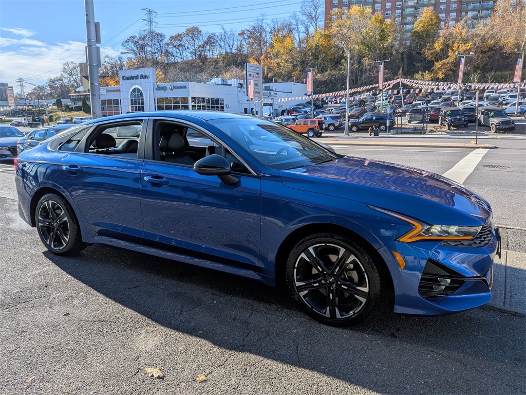 2023 Kia K5 GT-Line Sapphire Blue. Specifications, features, safety and warranty data are based on what is available as standard specs/features per trim level, for the designated model-year, and may not apply to vehicles with added packages or options. See dealer for written warranty information. Dealer makes no guarantees or warranties, either expressly or implied, with respect to the accuracy of any data listed on this page which was obtained from third party sources. All vehicles are subject to prior sale. Prices include all eligible factory rebates to dealer. Prices do not include upfits, plows, or other accessories. Price does not include applicable tax, title, license, processing and/or documentation fees, and any emissions testing charges. Doc fees vary by state (Rhode Island $399, Massachusetts $499, Connecticut $599, New York $175, Illinois $367.70, Florida $995 doc fee and $169 electronic filing fee, Pennsylvania $422, Missouri $499.99, New Jersey $795). Price and availability subject to change. Manufacturer's Suggested Retail Price (MSRP) is listed for customer information and customer comparison purposes only, and the actual sales price may vary depending on changing market conditions and other factors. Any information contained on this page should be used for informational purposes only. All vehicles may not be physically located at this dealership but may be available for delivery through this location. Please contact the dealership for more specific information. You Will Be Satisfied.