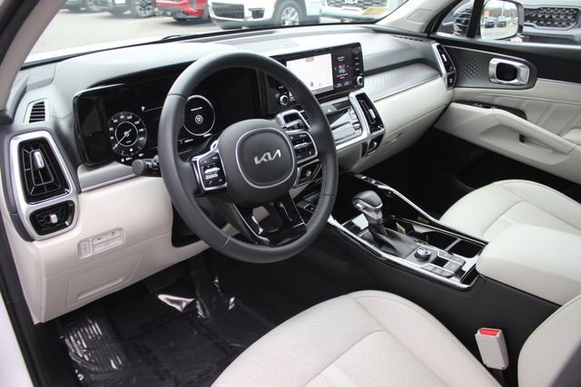The 2023 Kia Sorento SX offers a blend of style, comfort, and advanced safety features. With a turbocharged 2.5L engine and front wheel drive, this sport utility vehicle is designed for both performance and efficiency. The interior provides ample space for passengers and cargo, while the exterior features a sleek design with a white finish. Enjoy modern technology, a panoramic sunroof, and a suite of driver assistance systems for added peace of mind.