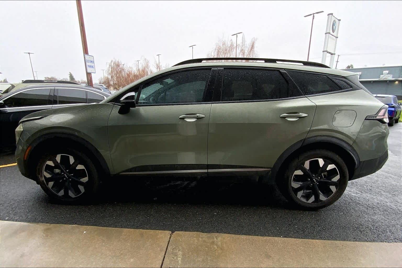 Jungle Green 2023 Kia Sportage X-Line AWD 8-Speed Automatic I4 AWD, 4-Wheel Disc Brakes, 6 Speakers, ABS brakes, Air Conditioning, Alloy wheels, AM/FM radio: SiriusXM, Apple CarPlay & Android Auto, Auto High-beam Headlights, Automatic temperature control, Axle Ratio: 3.648, Brake assist, Bumpers: body-color, Cargo Mat, Cargo Net Hybrid w/o Audio, Carpet Floor Mats X-Line, Compass, Delay-off headlights, Driver door bin, Driver vanity mirror, Dual front impact airbags, Dual front side impact airbags, Electronic Stability Control, Emergency communication system, Four wheel independent suspension, Front anti-roll bar, Front Bucket Seats, Front Center Armrest, Front dual zone A/C, Fully automatic headlights, harman/kardon Speakers, Heated door mirrors, Heated Front Bucket Seats, Heated front seats, Illuminated entry, Leather Shift Knob, Leather steering wheel, Low tire pressure warning, Navigation System, Occupant sensing airbag, Outside temperature display, Overhead airbag, Overhead console, Panic alarm, Passenger door bin, Passenger vanity mirror, Power door mirrors, Power driver seat, Power steering, Power windows, Premium Leatherette Seat Trim, Radio: AM/FM/HD Audio System, Rain sensing wipers, Rear anti-roll bar, Rear seat center armrest, Rear window defroster, Rear window wiper, Remote keyless entry, Security system, Speed control, Speed-sensing steering, Split folding rear seat, Spoiler, Steering wheel mounted audio controls, Tachometer, Telescoping steering wheel, Tilt steering wheel, Traction control, Trip computer, Turn signal indicator mirrors, Variably intermittent wipers, Wheels: 19 Gloss Black Alloy, AWD. Recent Arrival! 23/28 City/Highway MPG