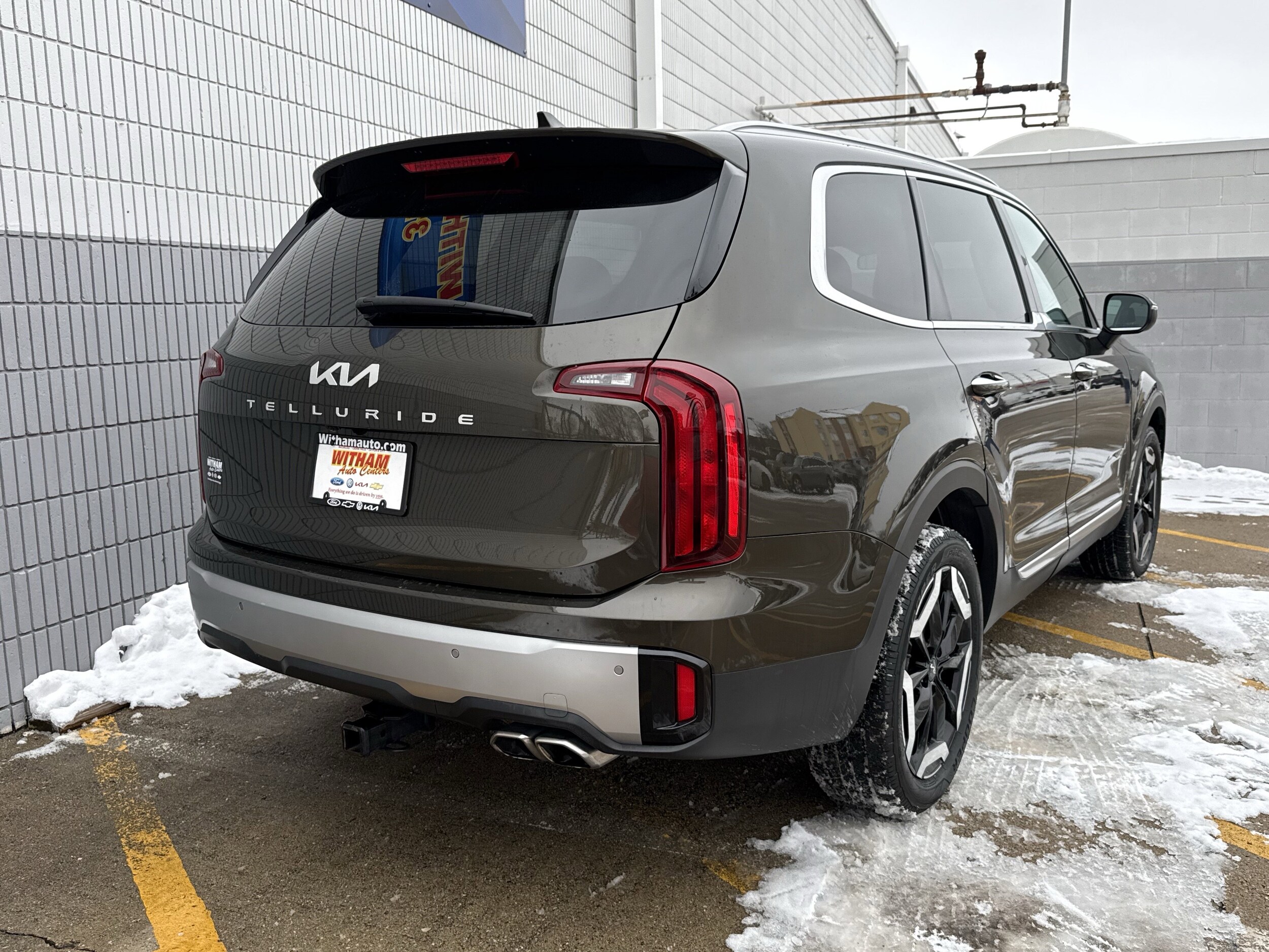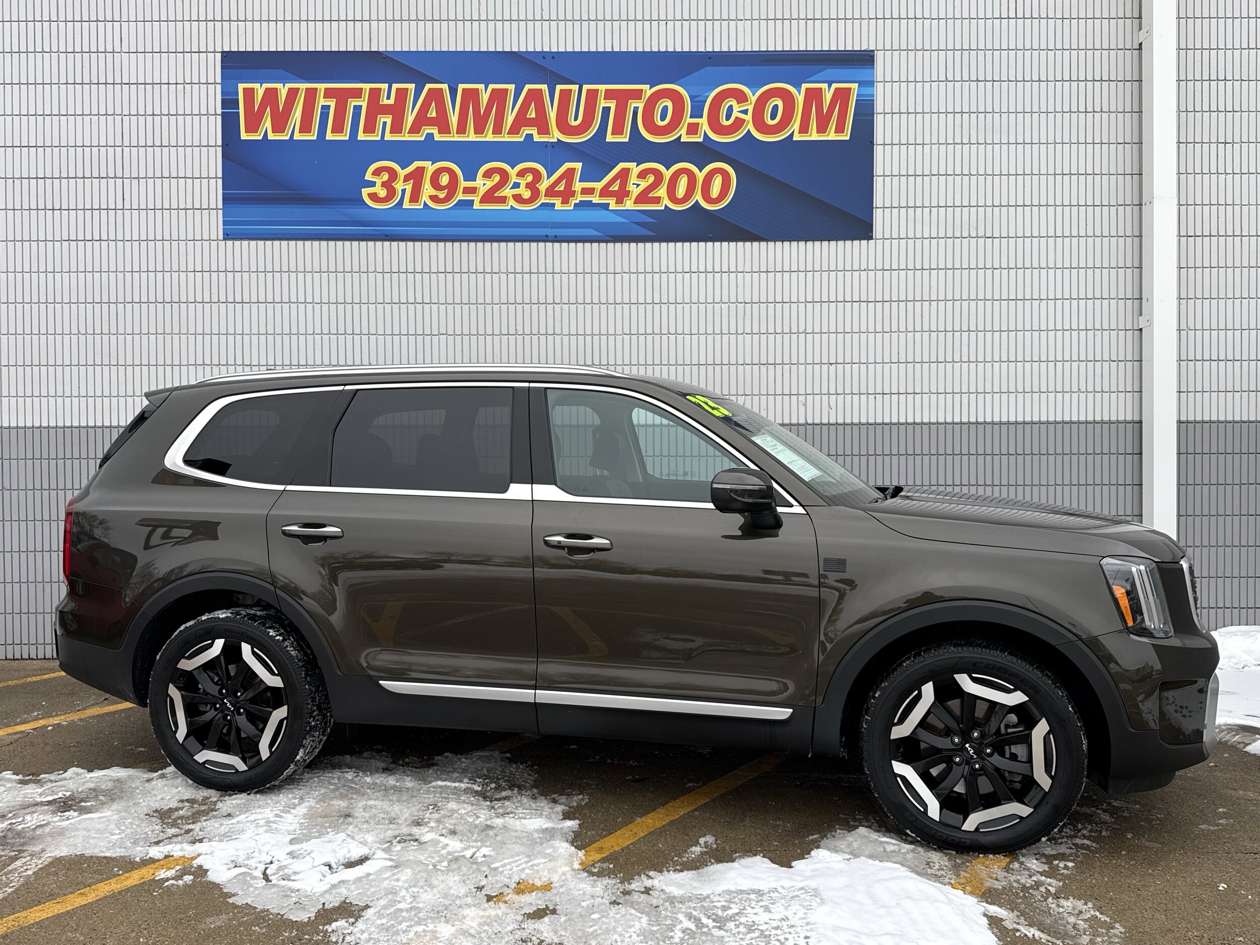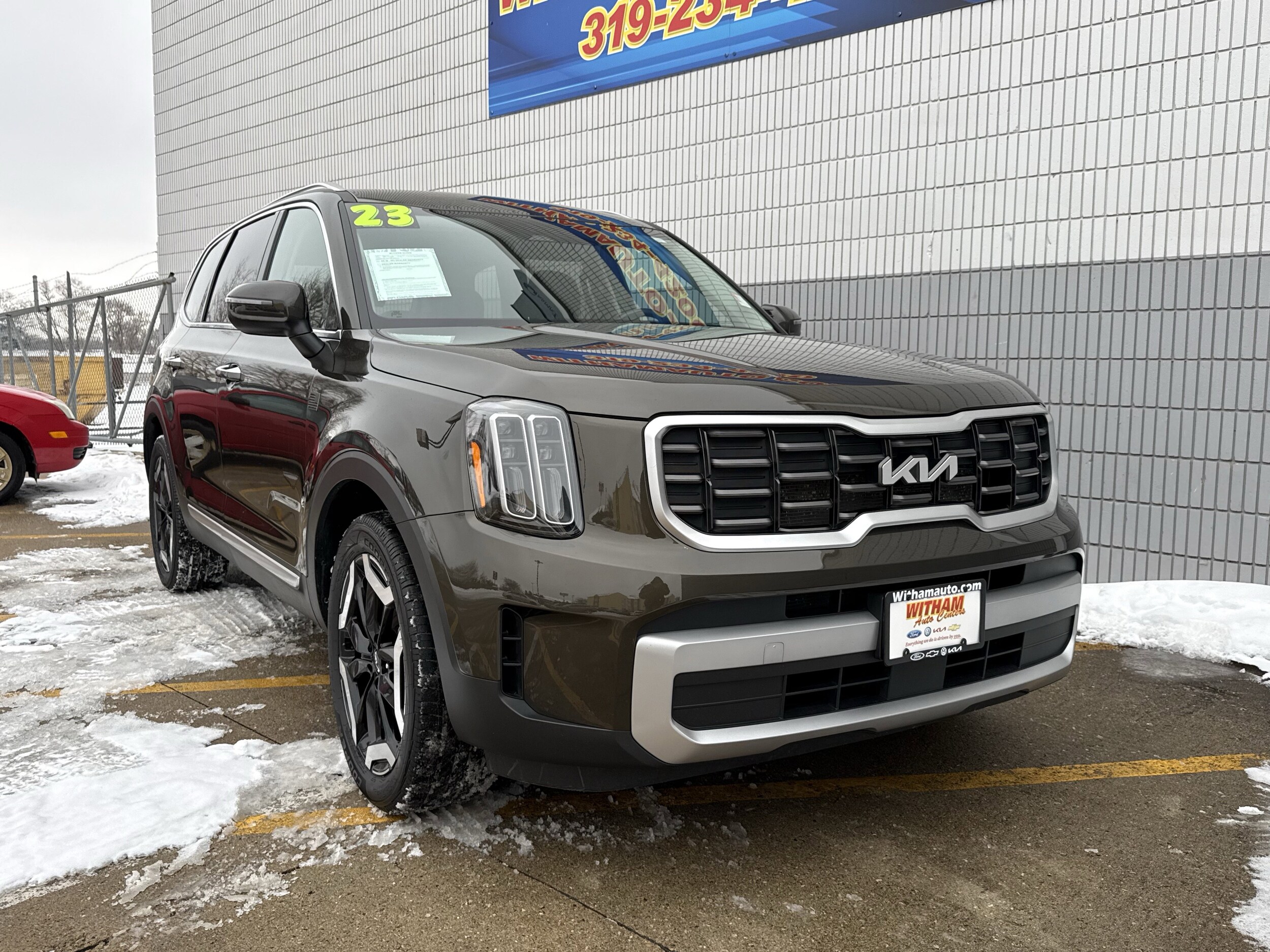 Scores 26 Highway MPG and 20 City MPG! This Kia Telluride delivers a Regular Unleaded V-6 3.8 L/231 engine powering this Automatic transmission. Dark Moss, carpet floor mats, black, Syntex synthetic leather seat trim. This Kia Telluride features the following options wireless phone connectivity, wheels: 20" x 7.5" black finish -inc: machined finish accents, voice recorder, vehicle stability management (VSM) electronic stability control (ESC), variable intermittent wipers, valet function, trip computer, transmission: 8-speed automatic -inc: drive mode select (comfort/ECO/sport/smart), transmission w/driver selectable mode, sportmatic sequential shift control and oil cooler, trailer wiring harness harness. Visit us today. A short visit to Witham Auto Centers located at 2033 Laporte Rd, Waterloo, IA 50702 can get you a tried-and-true Telluride today!