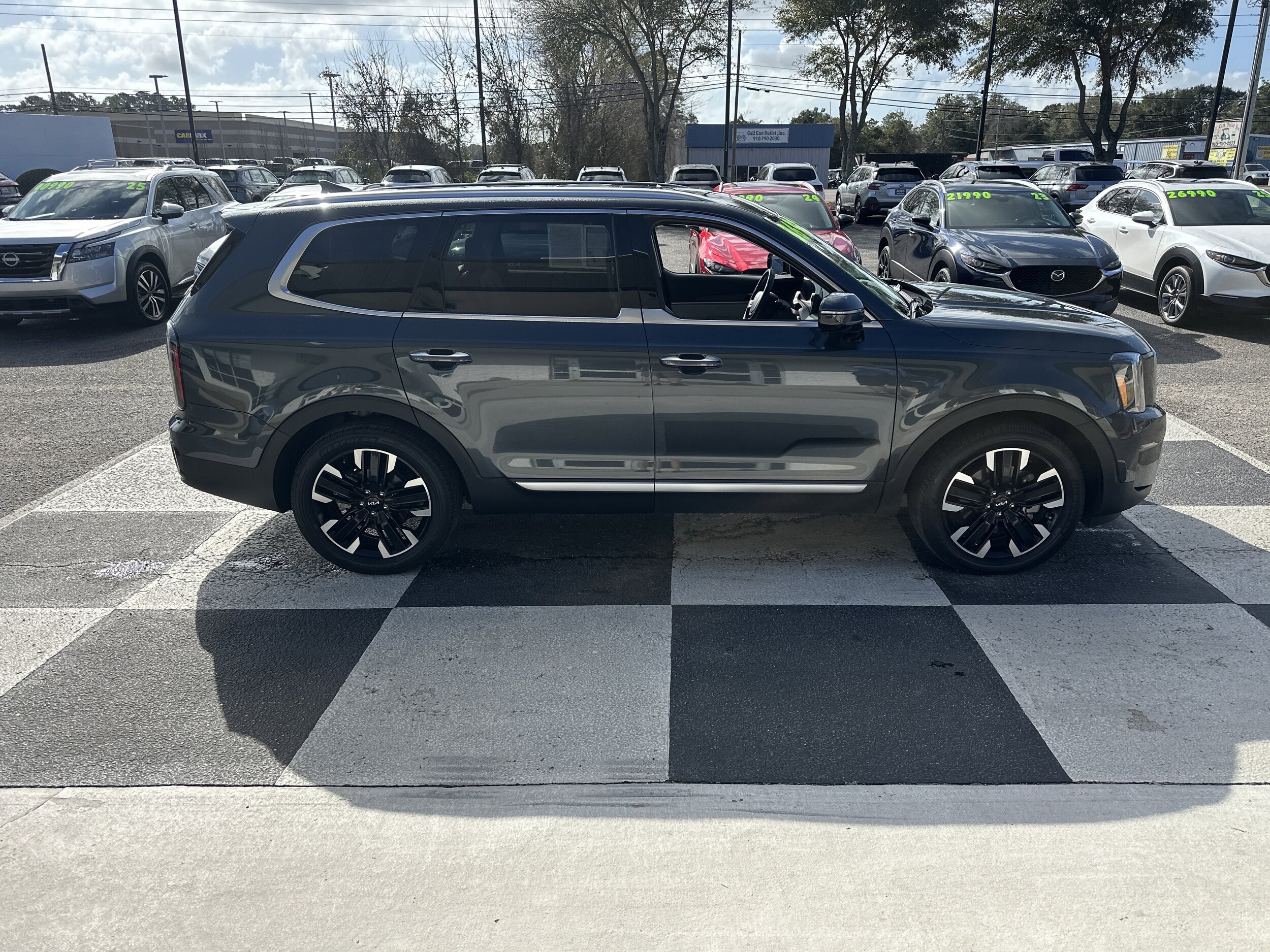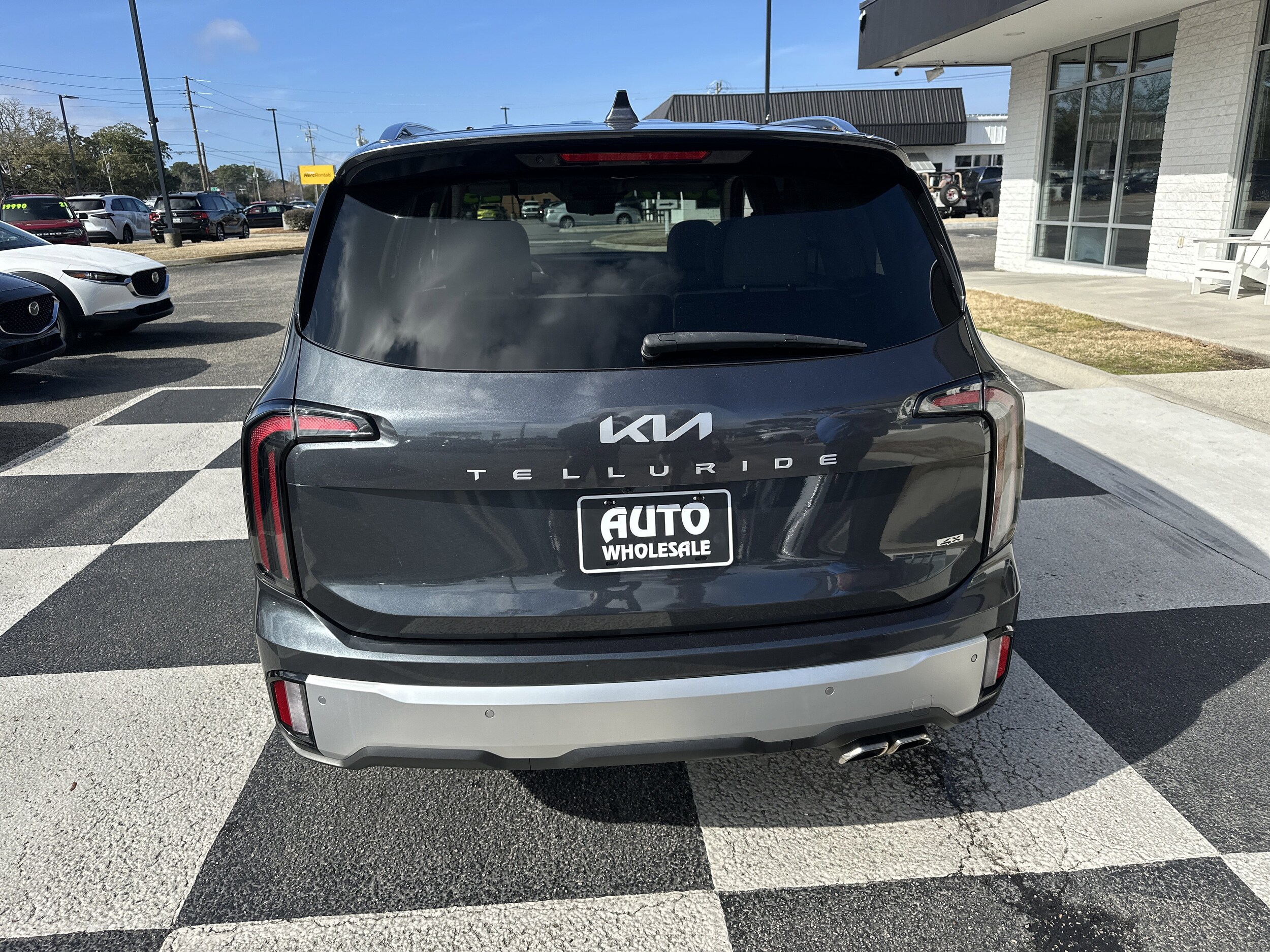 Only 19,440 Miles! Boasts 24 Highway MPG and 18 City MPG! This Kia Telluride delivers a Regular Unleaded V-6 3.8 L/231 engine powering this Automatic transmission. Self-leveling rear suspension, gray, premium Nappa leather seat trim, Gravity Gray. This Kia Telluride comes equipped with these options: carpet floor mats, wheels: 20" x 7.5" Black Finish -inc: machined finish accents, voice recorder, vehicle stability management (VSM) electronic stability control (ESC), valet function, trunk/hatch auto-latch, trip computer, transmission: 8-Speed Automatic -inc: drive mode select (comfort/ECO/sport/smart/snow), transmission w/Sportmatic Sequential Shift Control and oil cooler, trailer wiring harness. Visit us today. Come in for a quick visit at Auto Wholesale, 6003 Market St, Wilmington, NC 28405 to claim your Kia Telluride!