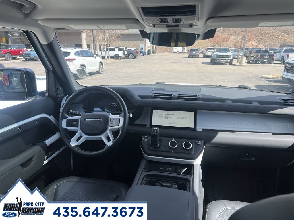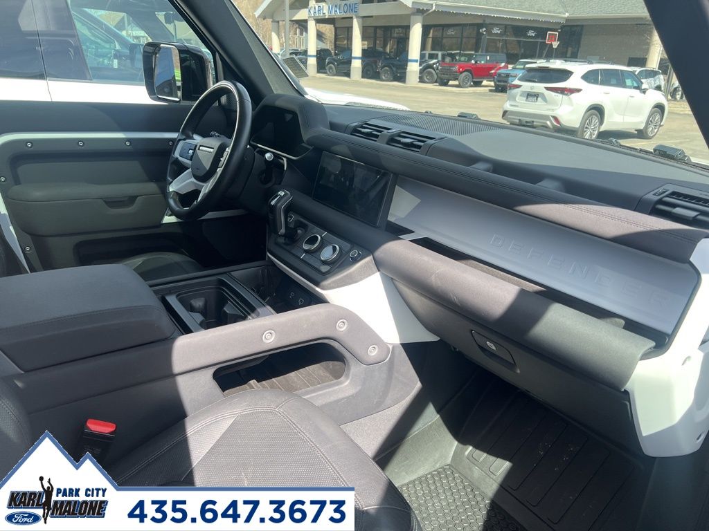 Recent Arrival! White 2023 Land Rover Defender 110. CARFAX One-Owner. Clean CARFAX. 4WD 8-Speed Automatic. 2.0L Turbocharged. Come to karlmalonefordparkcity.com To See Our Specials!! Call us at (435) 647-3673 For help with any of our Departments!! See us on our Facebook page. Prices plus $399 dealer fee. Car Availability, Mileage, Equipment, Color and Prices (including MSRP and discounts) may vary due to the involvement of other vendors and human error. Please verify by calling us. Peace of mind. Vehicle history report. Title information. Odometer readings. Accident data (if applicable). Service history. Vehicle usage. Recall information (if applicable). Warranty status. Free CarFax report. A name you can trust. Karl Malone Ford Park City is dedicated to your satisfaction before, during, and after your purchase. We'll go the extra mile to take care of you.