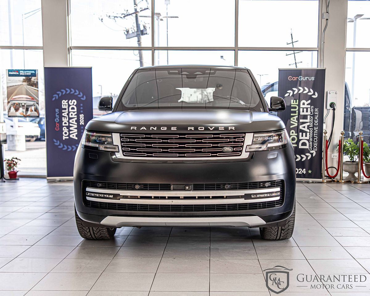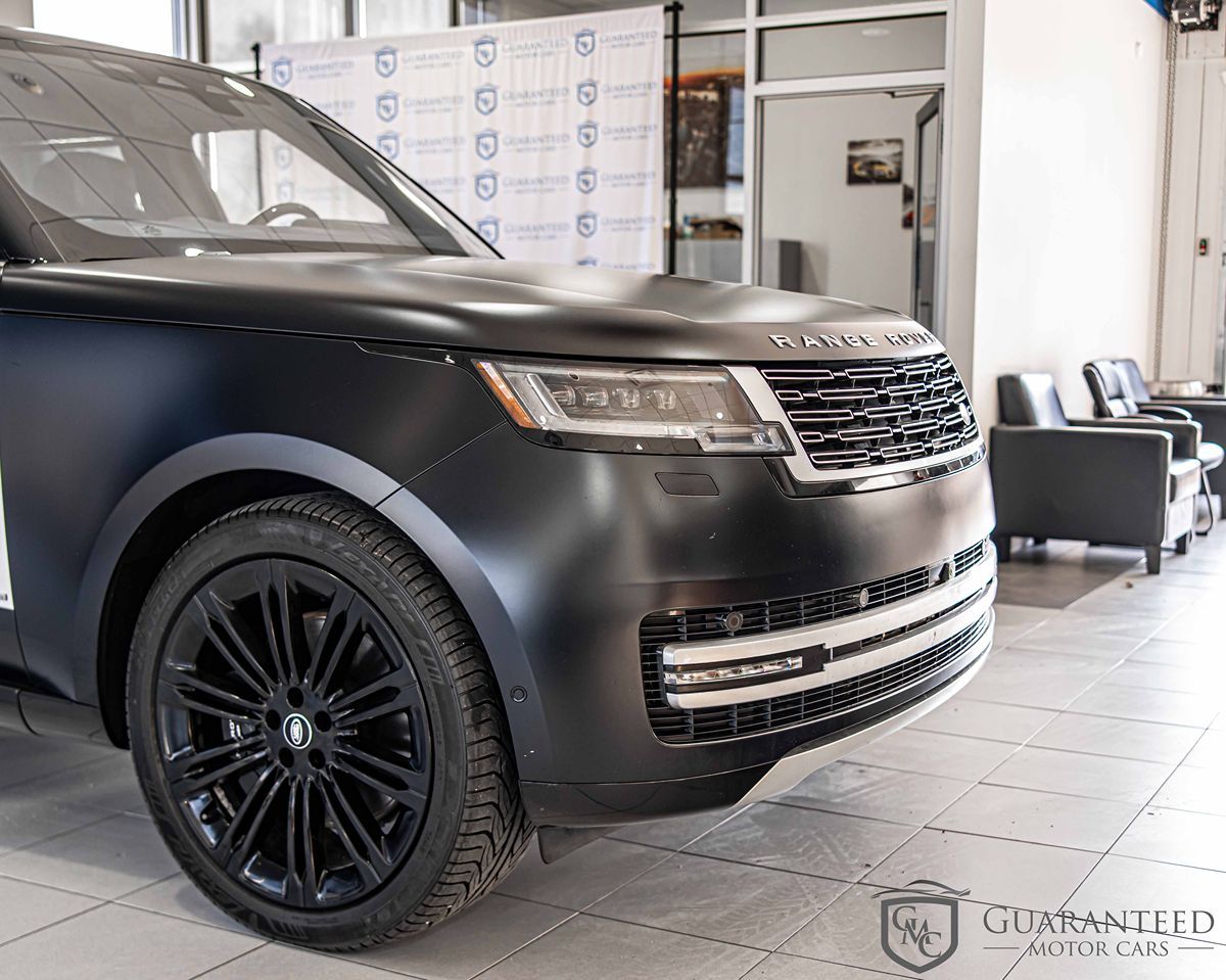 Discover luxury redefined with this stunning 2023 Land Rover Range Rover Autobiography LWB, a Carfax 1-Owner vehicle that exudes sophistication and class. Clad in the exquisite Ligurian Black SV Bespoke Ultra Metallic Satin, this SUV stands as a masterpiece of design and craftsmanship. With its long wheelbase and striking 23" gloss black wheels (style 1075), this Range Rover commands presence and delivers an unparalleled driving experience. Step inside the opulent interior, and you're greeted by a world of luxury with Ebony/Ebony SV Bespoke Near-Aniline Leather Seat Trim. The SV Bespoke Gloss Wood & Leather Steering Wheel enhances the exquisite cabin ambiance, perfectly complemented by advanced features like the heads-up display and panoramic sunroof. Comfort is paramount with heated seats, while forward collision warning and blind spot monitoring ensure your safety on every journey. Offering the ultimate in versatility, this Range Rover comes equipped with all-wheel drive and is powered by a formidable 4.4L 8-cylinder engine. Active cruise control, a towing package, and rain-sensing wipers make every adventure seamless and enjoyable. Bluetooth connectivity and the convenient parking assist feature also add layers of convenience, making this SUV a dream to drive. The Range Rover Autobiography LWB truly embodies luxury, performance, and innovation, promising an unmatched driving experience.