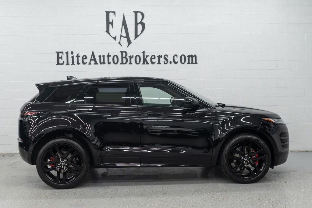 2021 Range Rover Evoque R-Dynamic HST AWD with only 17k miles. One Owner Clean Carfax! Loaded with 21" Wheels, Cold Climate Pack, Dynamic Handling Pack, Sliding Panoramic Roof, Blind Spot Assist, Lane Keep Assist, Parking sensors, Navigation, Heated seats, Heated steering wheel, Apple CarPlay, Satellite Radio, Bluetooth, Rear Privacy tinted windows, Keyless entry, Power tailgate and much more. This Land Rover features a Santorini Black Metallic exterior over Ebony Duo leather seats. Balance of Land Rover factory warranty to November 2026 or 50k mi. All books and two remote keys. SHOWROOM READY! The 2023 Range Rover Evoque R-Dynamic HST AWD features a powerful 2.0L Turbocharged 4-cylinder engine with a Mild Hybrid Electric Vehicle (MHEV) system (P300), producing 296 horsepower and 295 lb-ft of torque, paired with a 9-speed automatic transmission and standard all-wheel drive, offering strong performance with electric assist for efficiency and responsiveness.