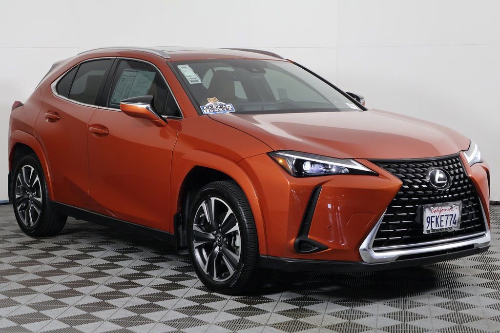 Orange 2023 Lexus UX 250h Premium FWD CVT 2.0L 16V DOHC 2.0L 16V DOHC. Recent Arrival! Odometer is 15768 miles below market average! 43/41 City/Highway MPG Total SRP (aka TSRP) is the Total Suggested Retail Price and DPH references the Delivery Process and Handling fee (if applicable). Neither the dealership nor the website provider is responsible for misprints on prices or equipment. It is the customer’s sole responsibility to verify the accuracy of the prices with the dealer, including the pricing for all added accessories. Advertised service loaners may not be immediately available for demonstration or delivery. See dealer to schedule an appointment. All advertised prices exclude government fees and taxes, finance charges, dealer document processing charge of $85, electronic filing charge and any emission testing charge and Dealer Installed Accessories. All vehicles subject to prior sale. All prices, specifications, and availability subject to change without notice. Certain vehicles listed may be in transit and not available. Images shown are for informational purposes, and may not represent the actual vehicle, or available configurable options. Dealer claims no responsibility for any inaccuracies contained herein. Trade in vehicles subject to visual inspection and confirmation of vehicle history, mileage, and equipment. Trade-in value estimates exclude any reconditioning costs and previous damage. Any amount you owe which is more than the amount allowed on your trade will be added to the new amount.