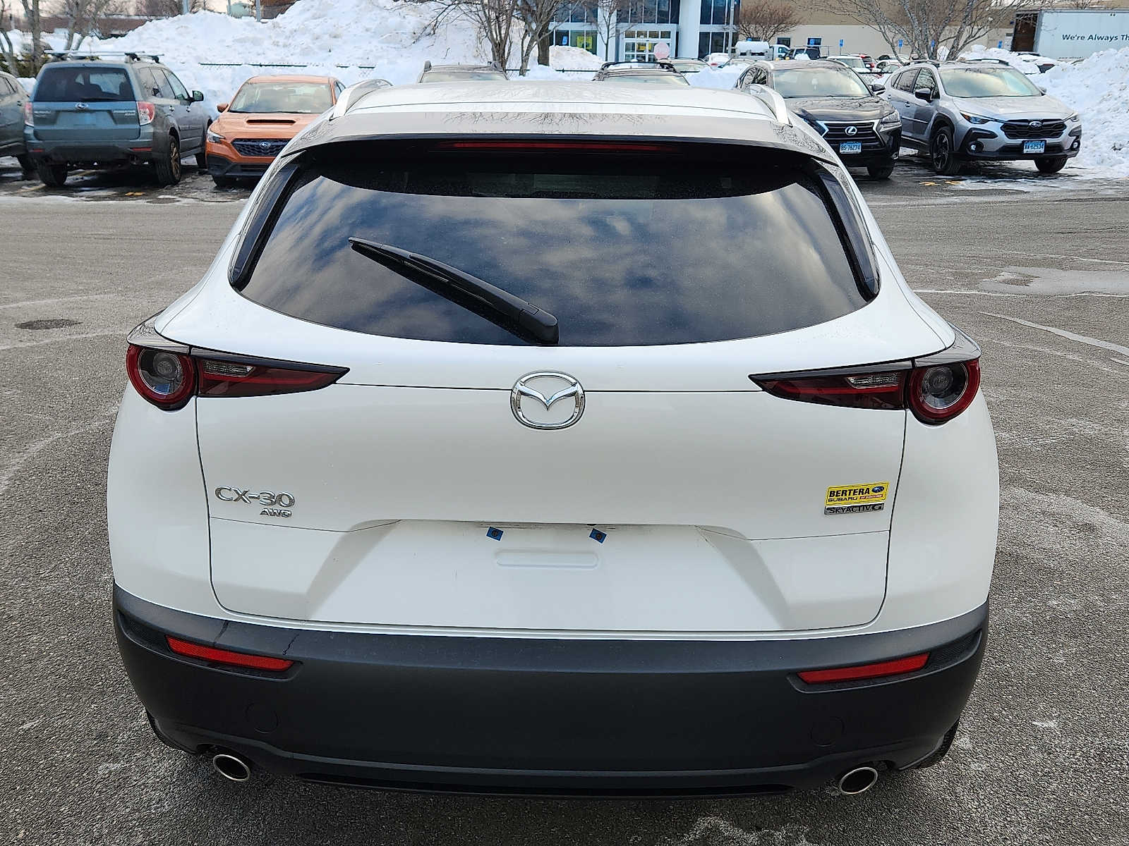 CARFAX 1-Owner. FUEL EFFICIENT 33 MPG Hwy/26 MPG City! Snowflake White Pearl Mica exterior and Black interior. Heated Leather Seats, Navigation, Moonroof, Aluminum Wheels, All Wheel Drive, Power Liftgate. Mazda CX-30 2.5 S Premium Package with Snowflake White Pearl Mica exterior and Black interior features a 4 Cylinder Engine with 191 HP at 6000 RPM. Welcome to Bertera Subaru Outlet in Hartford! We have a skilled and knowledgeable sales staff with many years of experience satisfying our customers needs. Located in Hartford, Connecticut, our friendly sales team will take as much time as needed to help you find the Subaru vehicle you want. We offer a great selection of new and used Subaru vehicles. Come on in and take a test-drive!