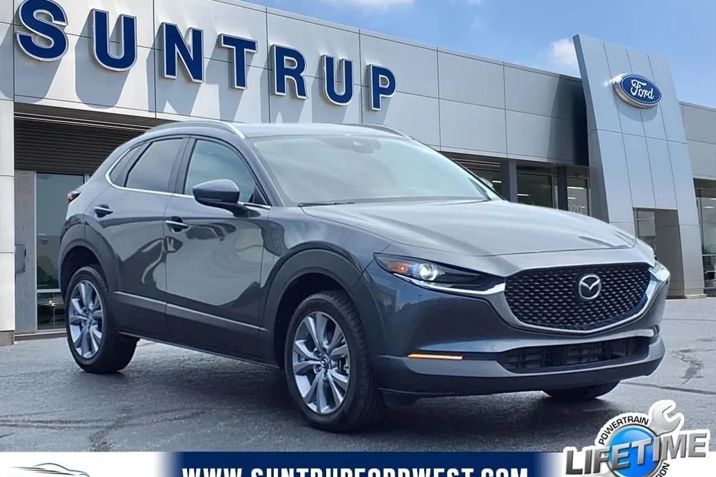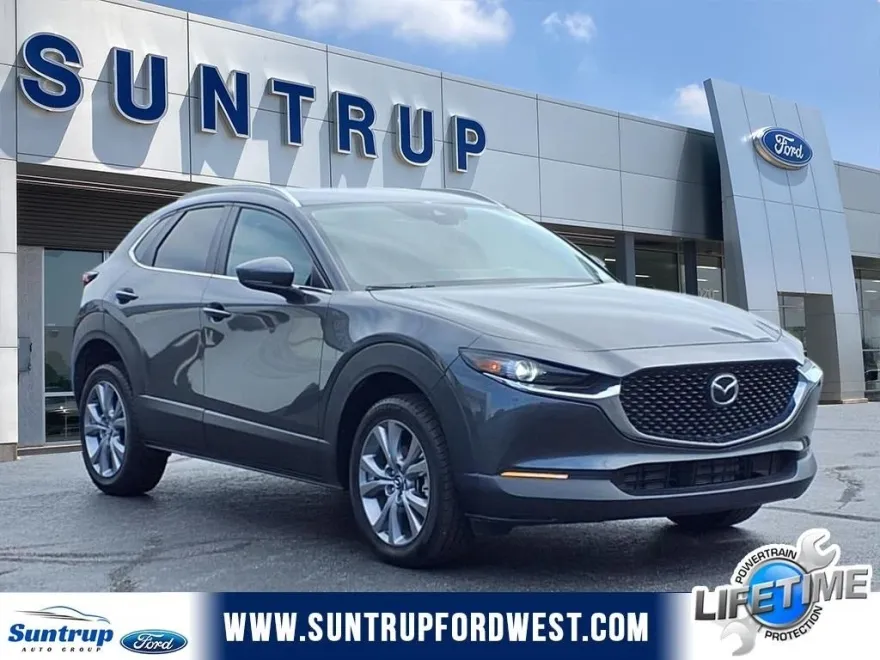 2023 Mazda CX-30 2.5 S Select Package Machine Gray Metallic. Low Miles!!!. CX-30 2.5 S Select Package, 4D Sport Utility, AWD, Black w/Leatherette Seat Trim, AppLink/Apple CarPlay and Android Auto, Brake assist, Electronic Stability Control, Exterior Parking Camera Rear, Fully automatic headlights, Leatherette Seat Trim, Mazda Connect Infotainment System, Mazda Navigation System, Navigation System, Panic alarm, Radio: AM/FM/HD Audio System, Remote keyless entry, Speed control, Steering wheel mounted audio controls, Traction control, Wheels: 18 x 7J Aluminum Alloy. 26/33 City/Highway MPG. Suntrup Ford now offers Lifetime Powertrain Protection on all eligible New and Pre-Owned Vehicles. It's no secret that people are keeping their vehicles longer and driving them farther than ever before. Because we want you to be our customer for life, our Ford dealership in St. Louis, MO is proud to provide Lifetime Powertrain Protection on our vehicles at no additional cost. We want you to have the peace of mind that comes from knowing you are covered for the cost of critical mechanical breakdowns. See dealer for details.