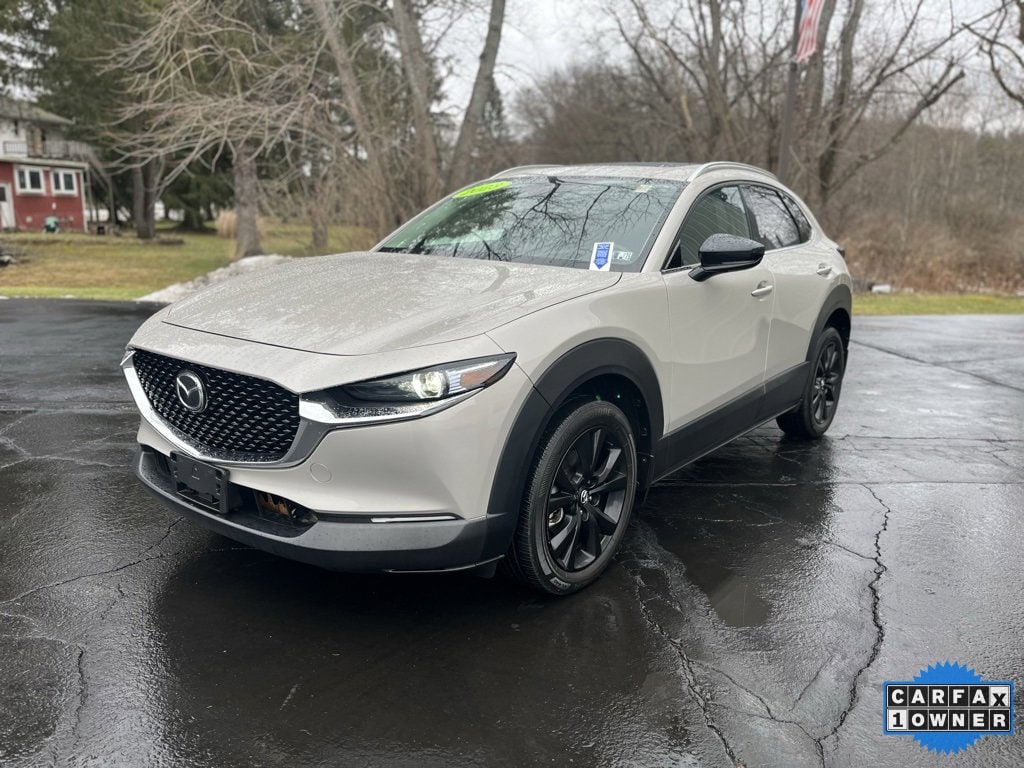 Priced below KBB Fair Purchase Price! Carfax One-Owner. Clean Carfax. 2023 Mazda CX-30 2.5 Turbo Premium Package 4D Sport Utility Platinum Quartz Metallic 2.5L I4 6-Speed Automatic AWD Odometer is 881 miles below market average! AppLink/Apple CarPlay and Android Auto, Emergency communication system: Mazda Connected Services (3-year complimentary trial included), Exterior Parking Camera Rear, Front dual zone A/C, Fully automatic headlights, Heads-Up Display, Heated front seats, Heated steering wheel, Leather Seat Trim, Low tire pressure warning, MAZDA CONNECT Infotainment System, Memory seat, Navigation system: MAZDA CONNECT, Power driver seat, Power moonroof, Rear window defroster, Wheels: 18 x 7J Aluminum Alloy. 22/30 City/Highway MPG Final Price may require vehicle trade in and Paul Brown trade assistance, see website for details. For a hassle free purchase experience, reach out to the Sales team at Paul Brown Chevy at (716) 244-6077. Conveniently located on Route 16 North, Olean NY 14760. We are worth the trip! Travel from over 75 miles away and don't purchase we will supply you with $25 gas card! Paul Brown Chevy, A Dealer For the People!