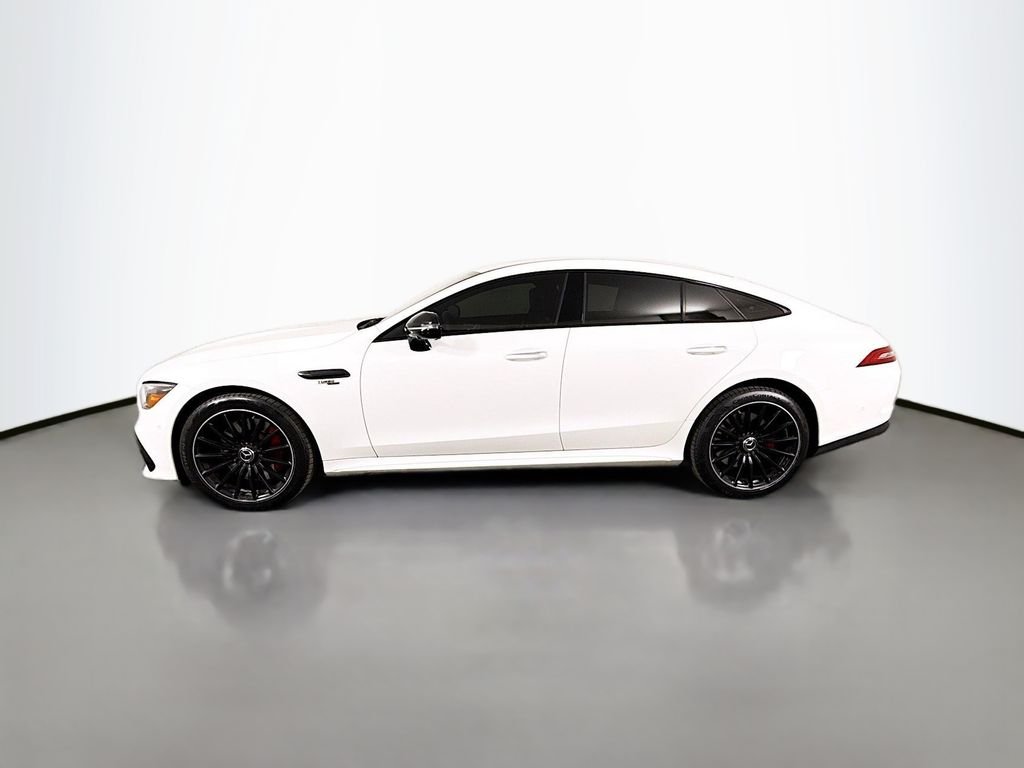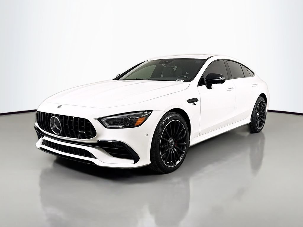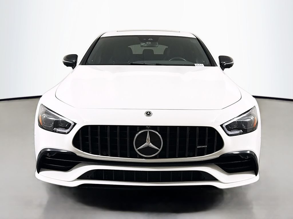 With a factory MSRP of $109,295, this 2023 Mercedes-AMG GT 43 4-Door Coupe combines sleek Polar White styling with bold Night Package details and distinctive yellow interior accents. Its AMG performance tuning and sport exhaust deliver an engaging, responsive drive with a refined edge. Inside, heated and ventilated seats, Burmester surround sound, and a panoramic glass sunroof elevate the experience. A perfect balance of everyday comfort and unmistakable AMG character.