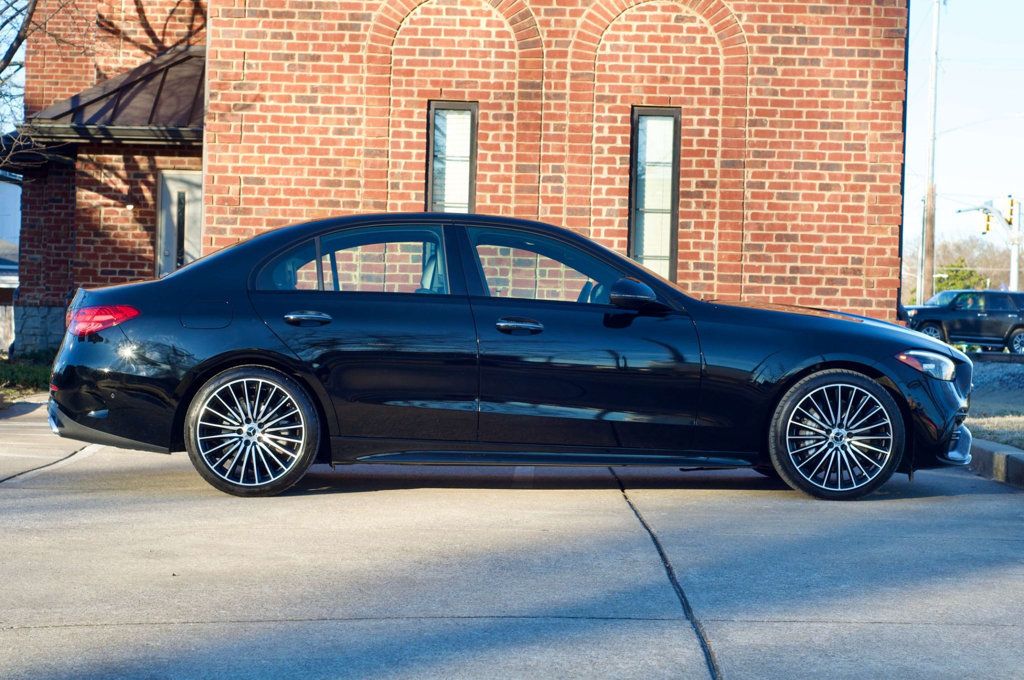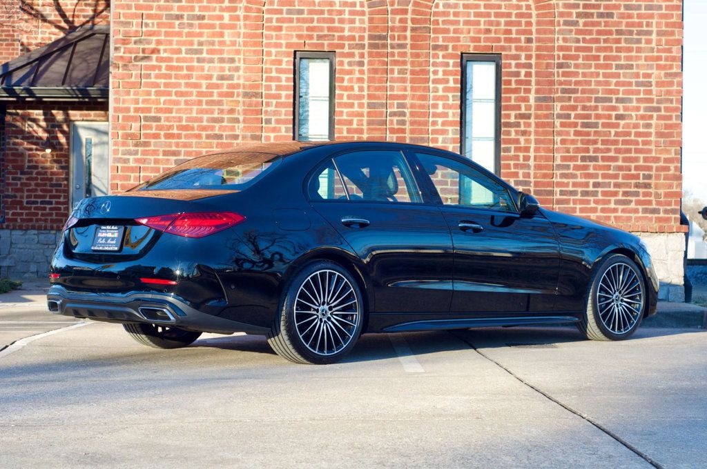This 2023 Mercedes-Benz C-Class LocalTrade/AMGLine/NightPkg/Heated&CooledSeats/BlindSpotMonitor Sedan is a used vehicle with 11,795 miles. It features a 2.0L 4-cylinder turbo engine with a 48V mild hybrid system, rear-wheel drive, and a balance of factory warranty. The interior is described as excellent with premium trim content, and the exterior is in excellent condition with no visible rust or accidents. Global Motorsports Belle Meade has a $699 doc fee in addition to the vehicle price.