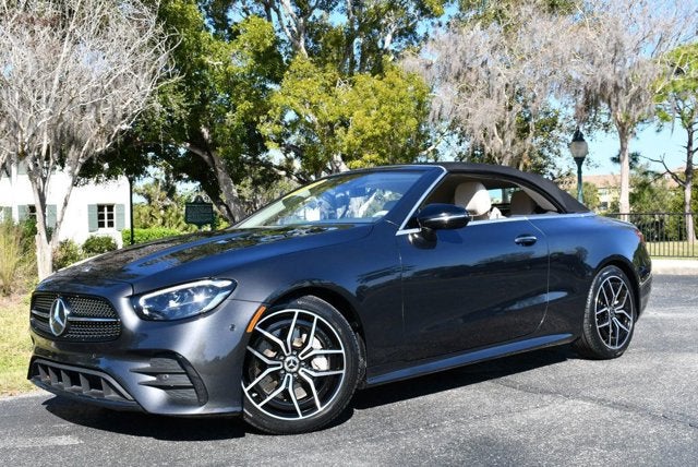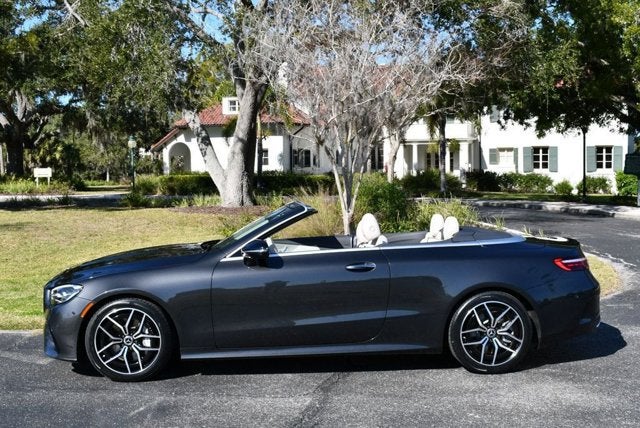 Please contact us for a complimentary Carfax report. 2023 Mercedes-Benz E450 RWD 2-door convertible. 1 owner. Balance of full factory warranty is in effect. Stunning Graphite Grey Metallic exterior. Macchiato Beige/Magma Grey leather trimmed interior. Black cloth convertible soft top. Due to the rapid pace of our vehicle sales, please call us to verify availability of the car you are interested in. Please allow us the opportunity to verify all pricing and options with you before your purchase. Pre-owned automobiles may not be available.