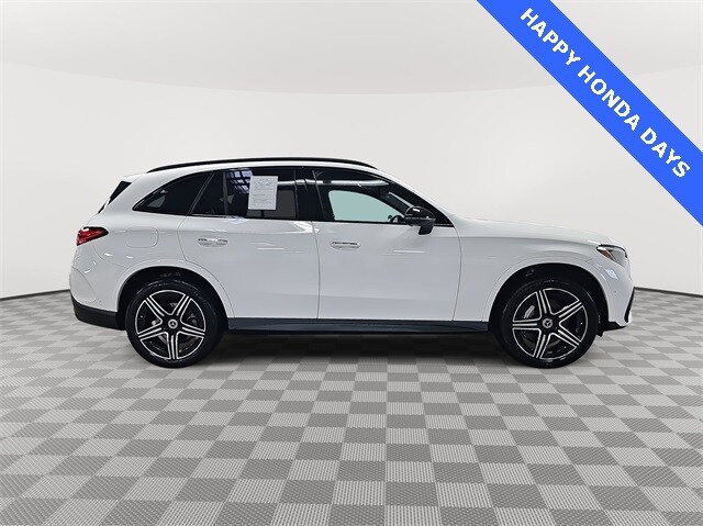Recent Arrival! 2023 Mercedes-Benz GLC 300 4MATIC White I4 9-Speed Automatic 4MATIC. This 2023 Mercedes-Benz GLC GLC 300 in White features: 11.9" Center Touchscreen Display, 16-Way Power Front Seats w/Memory/Lumbar/Thigh Ext, 18" 10-Spoke Wheels, 3 USB C-Ports, 4-Way Power Lumbar Support, 4-Wheel Disc Brakes, 8 Speakers, ABS brakes, Air Conditioning, Alloy wheels, AM/FM radio, Apple CarPlay/Android Auto, Auto High-beam Headlights, Auto tilt-away steering wheel, Auto-dimming Rear-View mirror, Automatic temperature control, Brake assist, Bumpers: body-color, Child-Seat-Sensing Airbag, Compass, Delay-off headlights, Driver door bin, Driver vanity mirror, Dual front impact airbags, Dual front side impact airbags, Electronic Stability Control, Emergency communication system: eCall Emergency System, Exterior Parking Camera Rear, Four wheel independent suspension, Front anti-roll bar, Front Bucket Seats, Front Center Armrest, Front dual zone A/C, Front reading lights, Fully automatic headlights, Garage door transmitter: HomeLink, Genuine wood dashboard insert, HD Radio, Head restraints memory, Heated door mirrors, Heated Front Bucket Seats, Heated front seats, Illuminated entry, Inductive Wireless Charging, Knee airbag, Leather steering wheel, Low tire pressure warning, MB-Tex Upholstery, MBUX Intelligent Vehicle Assistant (Hey Mercedes), Memory seat, Occupant sensing airbag, Outside temperature display, Overhead airbag, Overhead console, Panic alarm, Passenger door bin, Passenger vanity mirror, Power adjustable front head restraints, Power door mirrors, Power driver seat, Power Liftgate, Power passenger seat, Power steering, Power windows, Radio data system, Rain sensing wipers, Rear anti-roll bar, Rear fog lights, Rear reading lights, Rear seat center armrest, Rear window defroster, Rear window wiper, Remote keyless entry, Security system, Speed control, Speed-sensing steering, Split folding rear seat, Spoiler, Steering wheel memory, Steering wheel mounted audio controls, Tachometer, TBD Axle Ratio, Telescoping steering wheel, Tilt steering wheel, Traction control, Trip computer, Turn signal indicator mirrors, Variably intermittent wipers, Wireless Android Auto/Apple CarPlay.