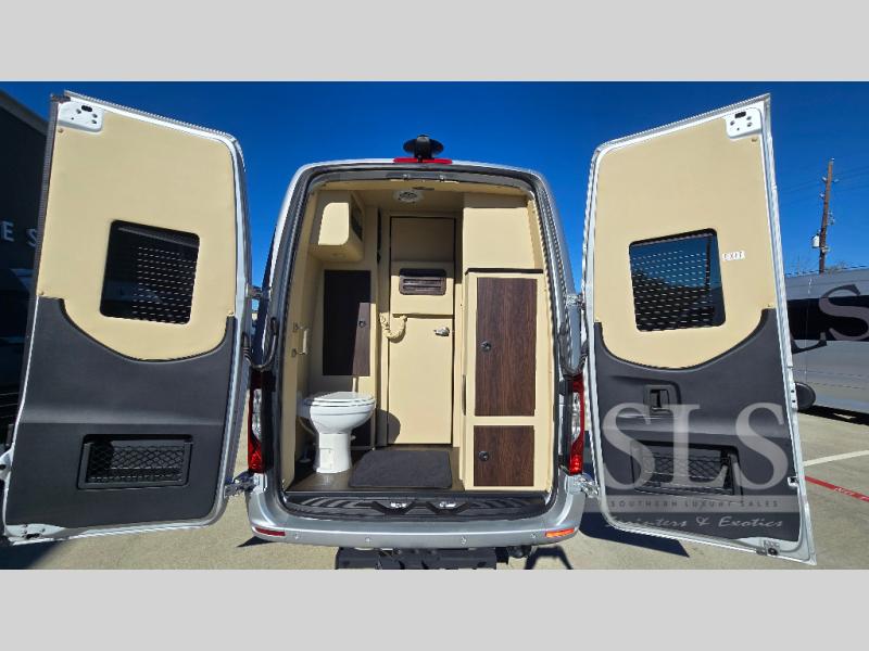 Midwest Automotive Designs Daycruiser Class B diesel S5 highlights: Five Captain's Chairs. It's time to take off with your friends to a local soccer game, an outdoor party, or even to see the beach in another state with this Daycruiser Class B diesel van. You will find nine seatbelts to load up the team and sleeping space for two on the foldout sofa which also seats four people. Everyone can watch the LED HDTV while relaxing on the Maybach-style seating. The kids, as well as the parents, will surely enjoy the wireless head phone system. You can store perishables in the refrigerator and make meals using the overhead 110V microwave. Having the convenience of a rear toilet room allows you to travel further without so many stops, so join the fun by owning this model today! With any Daycruiser Class B diesel motorhome, you will enjoy the modern technology that has been included, like the satellite prep TV, the Blu Ray DVD/CD player, the multiple 12V USB chargers and 110V outlets, and an upgraded audio system. Store additional items that you need to bring with you in the rear lighted luggage storage space and enjoy a thoroughly comfortable interior that is made possible by the complete insulation package. The hand-rubbed custom-made high-gloss wood package offers a stylish finish, plus the many upgraded features make any Daycruiser Class B diesel by Midwest Automotive Design the perfect Sprinter RV for all your needs. And if you plan to go off the beaten path, the optional 4x4 chassis upgrade will be a perfect choice, plus there are many other options you can add for even more comfort.