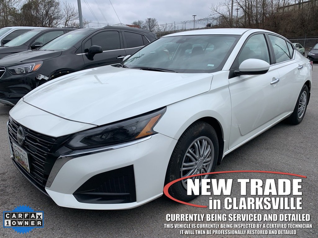 CARFAX One-Owner. Clean CARFAX. Glacier White 2023 Nissan Altima 2.5 S The Pre-Owned 2023 Nissan Altima 2.5 S with 2.5L 4-Cylinder DOHC 16V at Serra Clarksville. Well equipped: CVT with Xtronic, 4-Wheel Disc Brakes, 6 Speakers, ABS brakes, Air Conditioning, AM/FM radio, Auto High-beam Headlights, Body-Colored Splash Guards, Brake assist, Bumpers: body-color, Cloth Seat Trim, Delay-off headlights, Driver door bin, Driver vanity mirror, Dual front impact airbags, Dual front side impact airbags, Electronic Stability Control, Floor Mats/Trunk Mat/Hideaway Net, Four wheel independent suspension, Front anti-roll bar, Front Bucket Seats, Front Center Armrest, Front reading lights, Fully automatic headlights, Illuminated entry, Knee airbag, Low tire pressure warning, Occupant sensing airbag, Outside temperature display, Overhead airbag, Overhead console, Panic alarm, Passenger door bin, Passenger vanity mirror, Power door mirrors, Power steering, Power windows, Radio data system, Radio: AM/FM Audio System, Rear anti-roll bar, Rear Parking Sensors, Rear reading lights, Rear seat center armrest, Rear side impact airbag, Rear window defroster, Remote keyless entry, Security system, Speed control, Speed-sensing steering, Speed-Sensitive Wipers, Split folding rear seat, Steering wheel mounted audio controls, Tachometer, Tech Spec Change, Telescoping steering wheel, Tilt steering wheel, Traction control, Trip computer, Variably intermittent wipers, and Wheels: 16 x 7 Steel w/Full Wheel Covers. FWD 2.5L 4-Cylinder DOHC 16V CVT with Xtronic Recent Arrival! 27/39 City/Highway MPG Serra Cadillac Clarksville embodies a commitment to quality, integrity, and customer satisfaction with our Veteran Owned, Value Driven culture. With a vast selection of top-tier pre-owned vehicles, we cater to a diverse range of preferences, lifestyles and budgets. When you are searching for a pre-owned SUV or used truck near Nashville, look no further than Serra Cadillac Clarksville. Call (931) 245-3297 or visit us online at www.SerraCadillacClarksville.com.
