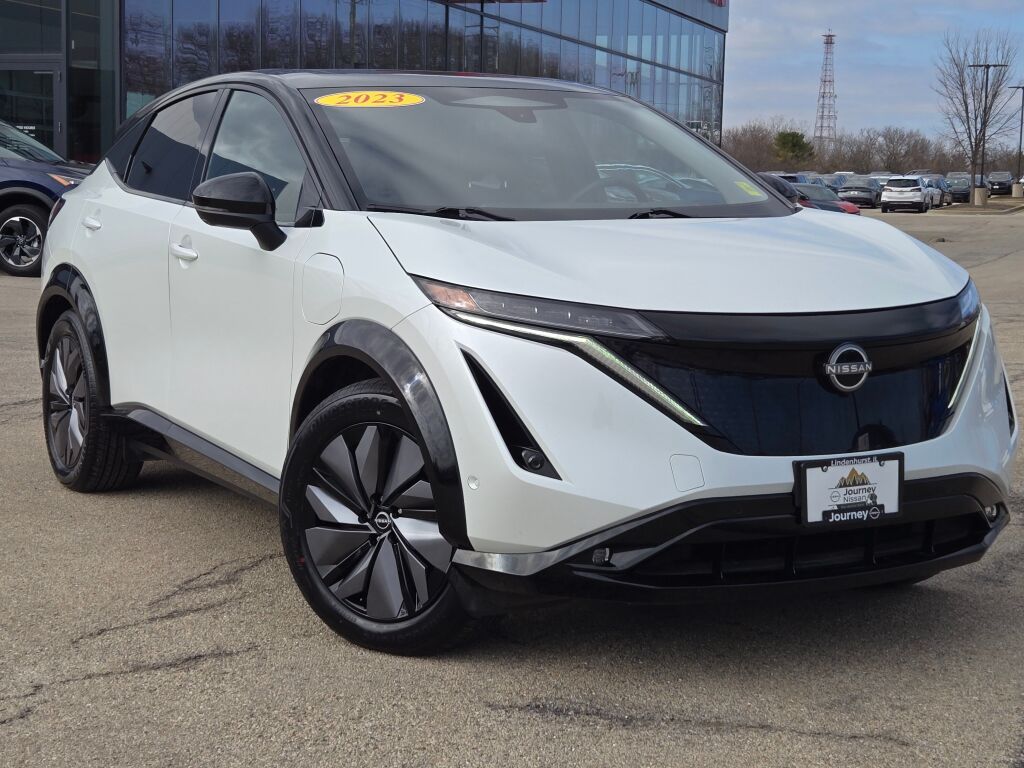 2023 Nissan Ariya Platinum+ e-4ORCE AWD Everest White Pearl Tricoat/Black Diamond Pearl. Journey Lifetime Warranty. 93/87 City/Highway MPG. Odometer is 4513 miles below market average! At Journey Nissan we take pride in treating our customers like family, ensuring that your experience is one that you will never forget. Every vehicle has been through a multi-point safety inspection and professionally cleaned and disinfected for your protection. Take advantage of our VIP test drive and experience by contacting us at 847-582-1020 to schedule a test drive. We are proud to service customers in Gurnee, Crystal Lake, Libertyville, Glendale Heights, Kenosha, Chicago and all surrounding Chicagoland areas. See dealer for complete details, dealer is not responsible for pricing errors. Price does not include tax, title, license and doc. See dealer for details. The value of used vehicles varies with mileage, usage and condition. Book values should be considered estimates only. Check for a vehicle's unrepaired recalls by VIN at http://vinrcl.gov/vin/. “For a great experience”.