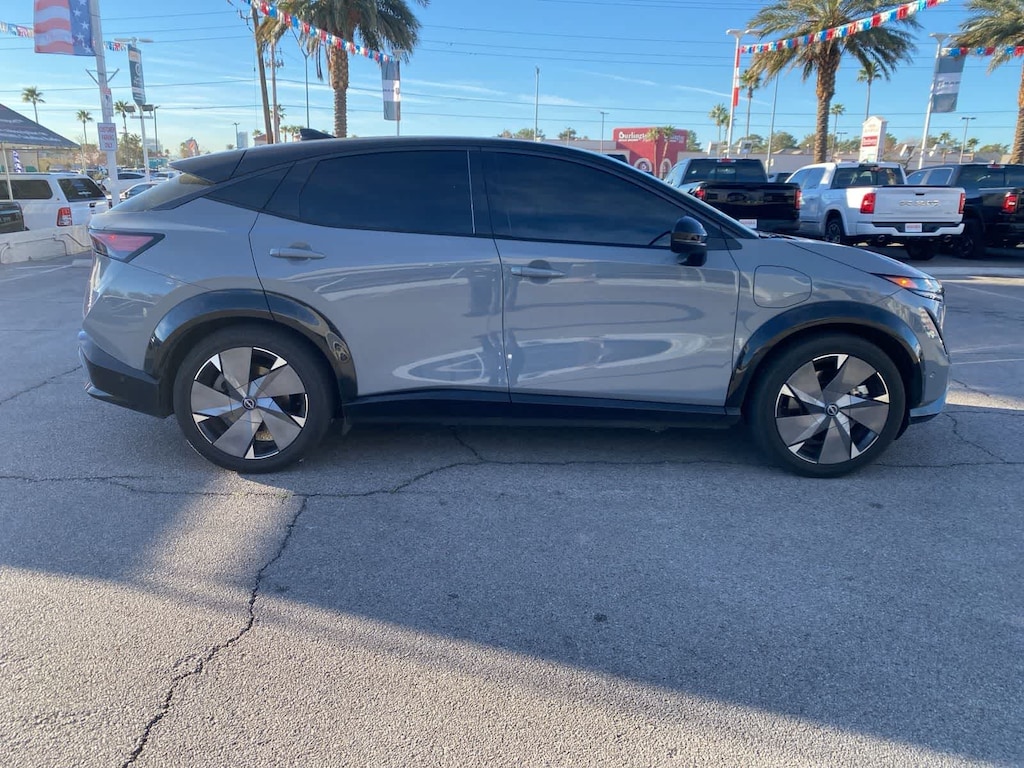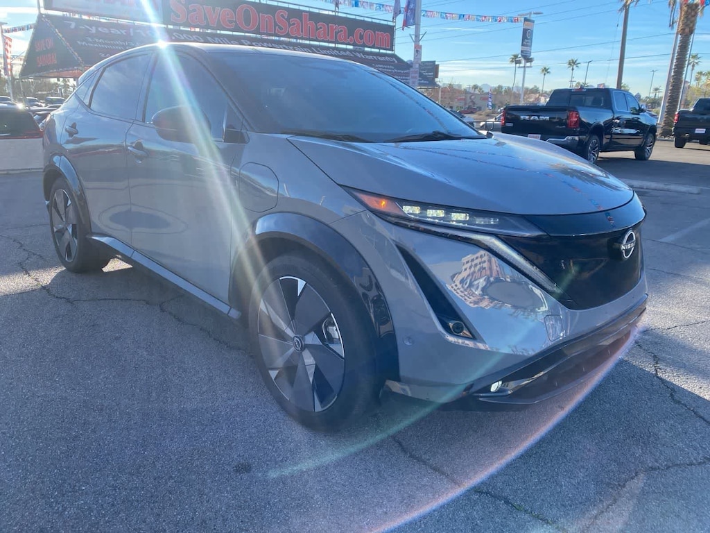 Clean Carfax. Boulder Gray Pearl/Black Diamond Pearl 2023 Nissan Ariya Platinum+ e-4ORCE AWD CVT Electric Motor. Recent Arrival! Odometer is 8476 miles below market average! 89/84 City/Highway MPG. Vehicle pricing does not include Protection Plus Package, Lojack, PermaPlate, Etch and Dealer Documentation Fee, taxes, and license fee. Sahara Chrysler Dodge Ram is dedicated to your satisfaction before, during, and after your purchase. We'll go the extra mile to take care of you.