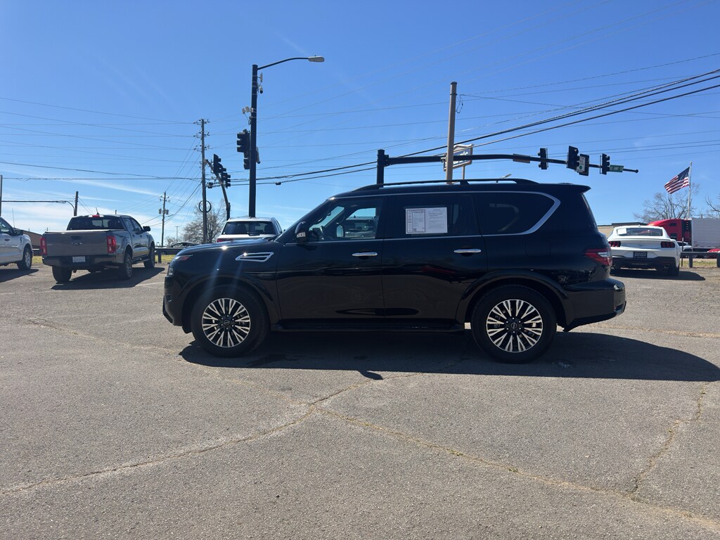 Experience refined power and comfort with this 2023 Nissan Armada SL, located in Corinth, MS. With only 24,615 miles, this low-mileage SUV combines a robust 5.6L V8 gasoline engine and rear-wheel drive for confident highway cruising and towing capability. The Nissan Armada SL delivers a premium interior highlighted by leather seats and a BOSE stereo system that brings crisp, immersive audio to every drive. Equipped with factory navigation and XM Radio, staying on course and entertained has never been easier. Safety and convenience features include a Back-Up Camera to assist with parking and maneuvering tight spaces, plus a host of modern amenities designed to elevate daily driving. The cabin offers spacious seating and thoughtful storage, making it ideal for family trips or long commutes. This vehicle represents exceptional value and is offered at the best price in the area. Its combination of low mileage, powerful V8 performance, and upscale SL trim makes it a smart choice for buyers seeking capability without sacrificing comfort. Located in Corinth, MS, this Nissan Armada is ready for immediate viewing and test drives. Contact us today to schedule your appointment and see why this 2023 Nissan Armada SL stands out as a top pick among pre-owned SUVs.